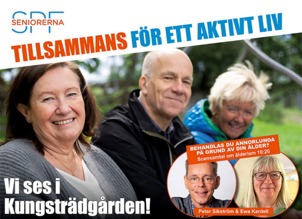 Kom och träffa oss i vårt montertält, bläddra i vår medlemstidning, berätta dina bästa idéer, lär dig mer om vår verksamhet, få koll på Seniorens resor, eller ta med dig en vän som vill bli medlem. Godis och tävling utlovas, och alla som registrerar sig som medlem får en SPF Seniorerna-kasse.