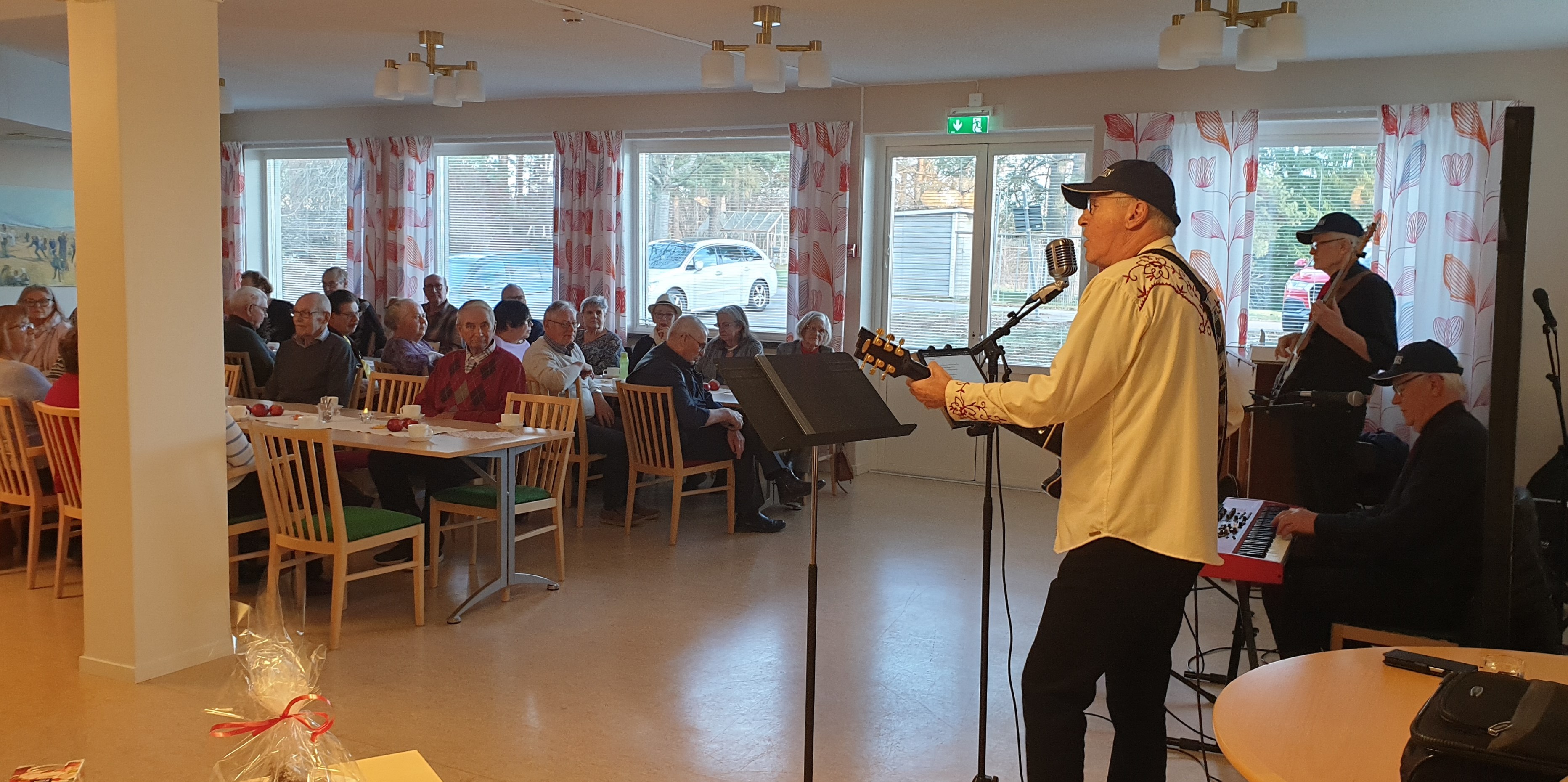 om kommande högtider, väder och vind, hotell-gropen, ja, inga problem att hitta samtalsämnen. Den härliga kaffedoften som vi mötte vid entren bådade gott. Vi fick ett fint besök av lokala förmågor, nämligen trion -Oldtimers band- som leds av Bengt Larsson, en medlem som är en duktig pianist.