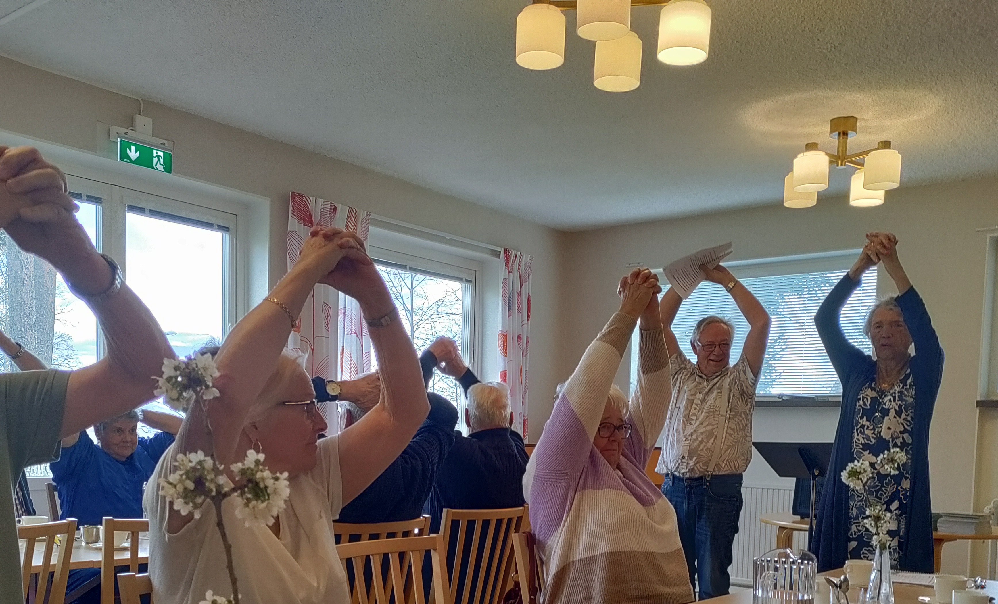 Innan vi fick det efterlängtade fikat fick vi göra några övningar som Barbro visade oss för att väcka våra kroppar efter allt stillasittande.