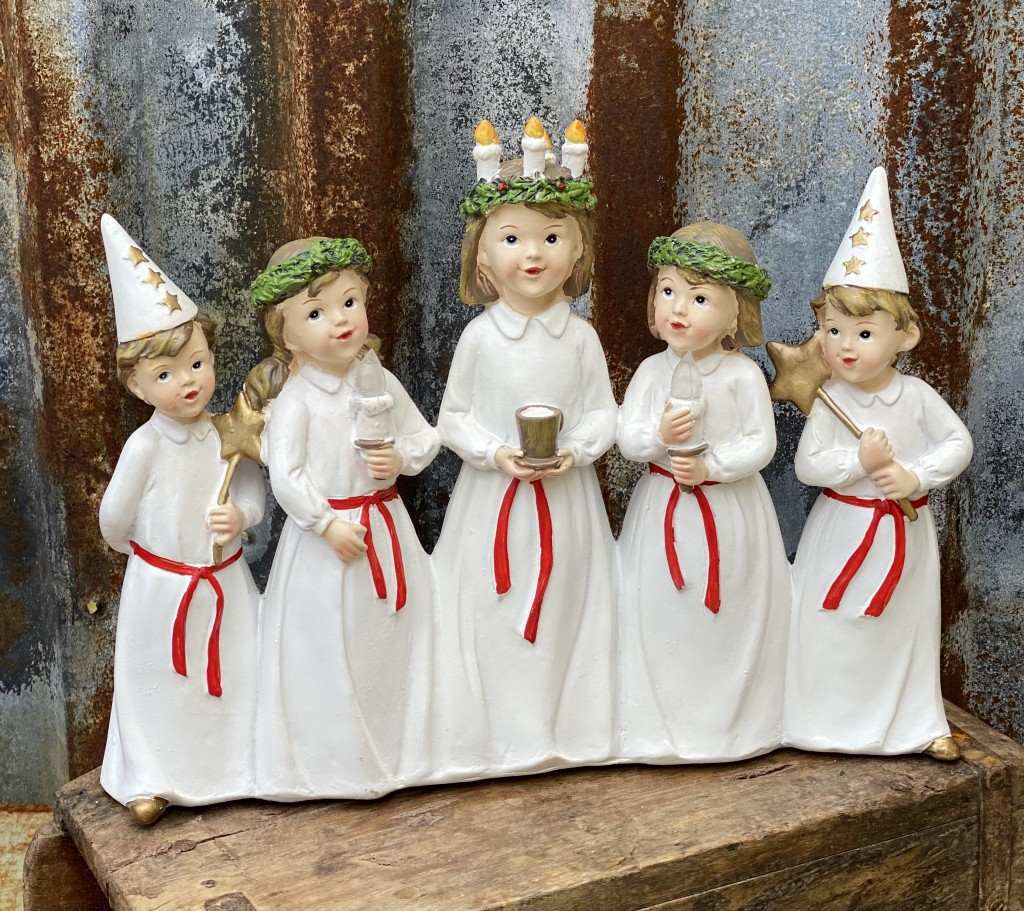 Till kaffet dämpades belysningen och sorlet likaså. Nu hördes också svaga röster närma sig och de små luciorna med en liten Staffan gjorde en fantastisk entre och som de sjöng. De små luciorna och stjärngosarna sjöng med intensitet och kraft sång efter sång. Vad månde bliva av dessa eminenta barn. Helt fantastiskt var det. Jag gissar att det var några tårar som kom trillande. Sandra Wallin höll ordning på barnen och allt fungerade så bra. Efter att de små avtågat dröjde det en stund innan sorlet började stiga igen. Om stämningen var grå och trist utanför så var den desto varmare och mysigare här inne.