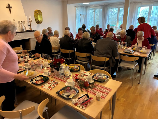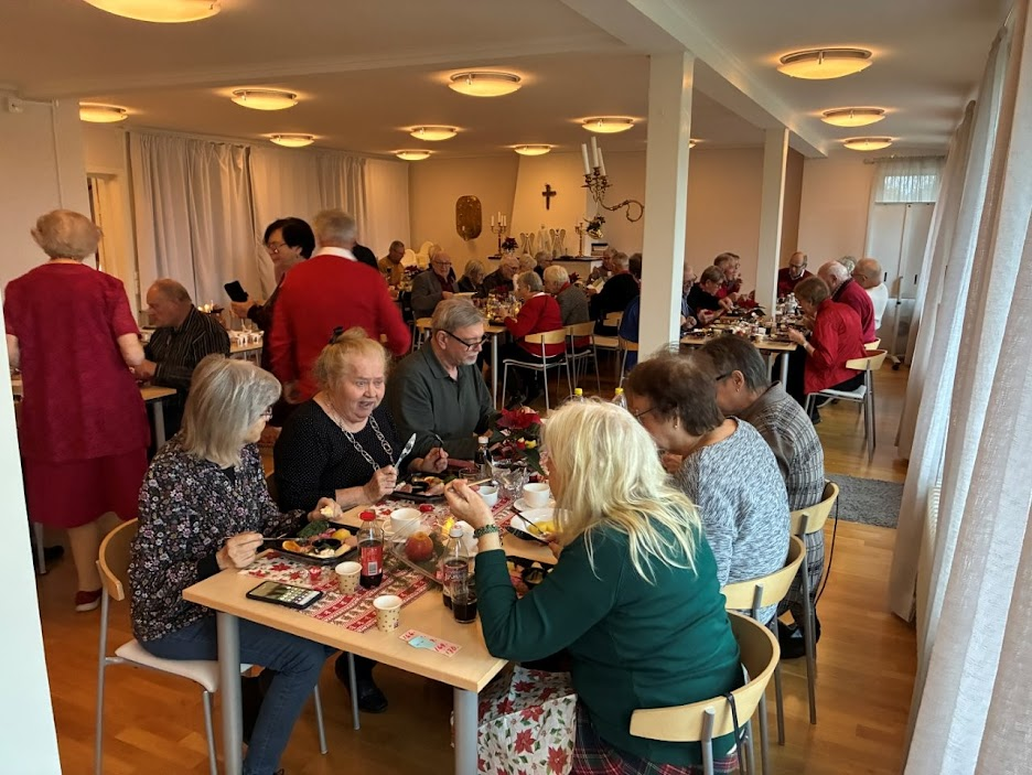 Vi hade planerat allt firande i Tallgården men så fick de problem och behövde hantverkare. Så vår eminenta styrelse fick i all hast boka nya lokaler tre dagar före festen och det gick att ändra på de ursprungliga planerna. Till och med julstämningen kunde de ta med sig. Skickligt gjort, men det gick. Bra jobbat.