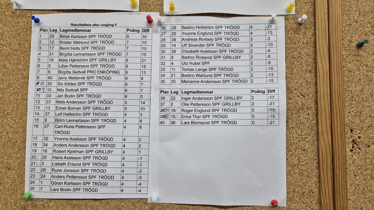 Dagens tävlingsledning hade som vanligt gjort ett fantastiskt jobb /ideellt arbete/ för att kunna dela åtta banor på 40 spelare. Det tog lite tid men det fungerade bra. Lena skötte datorn med alla siffror, kvoter, grupper och placeringar. Allt fungerade perfekt.