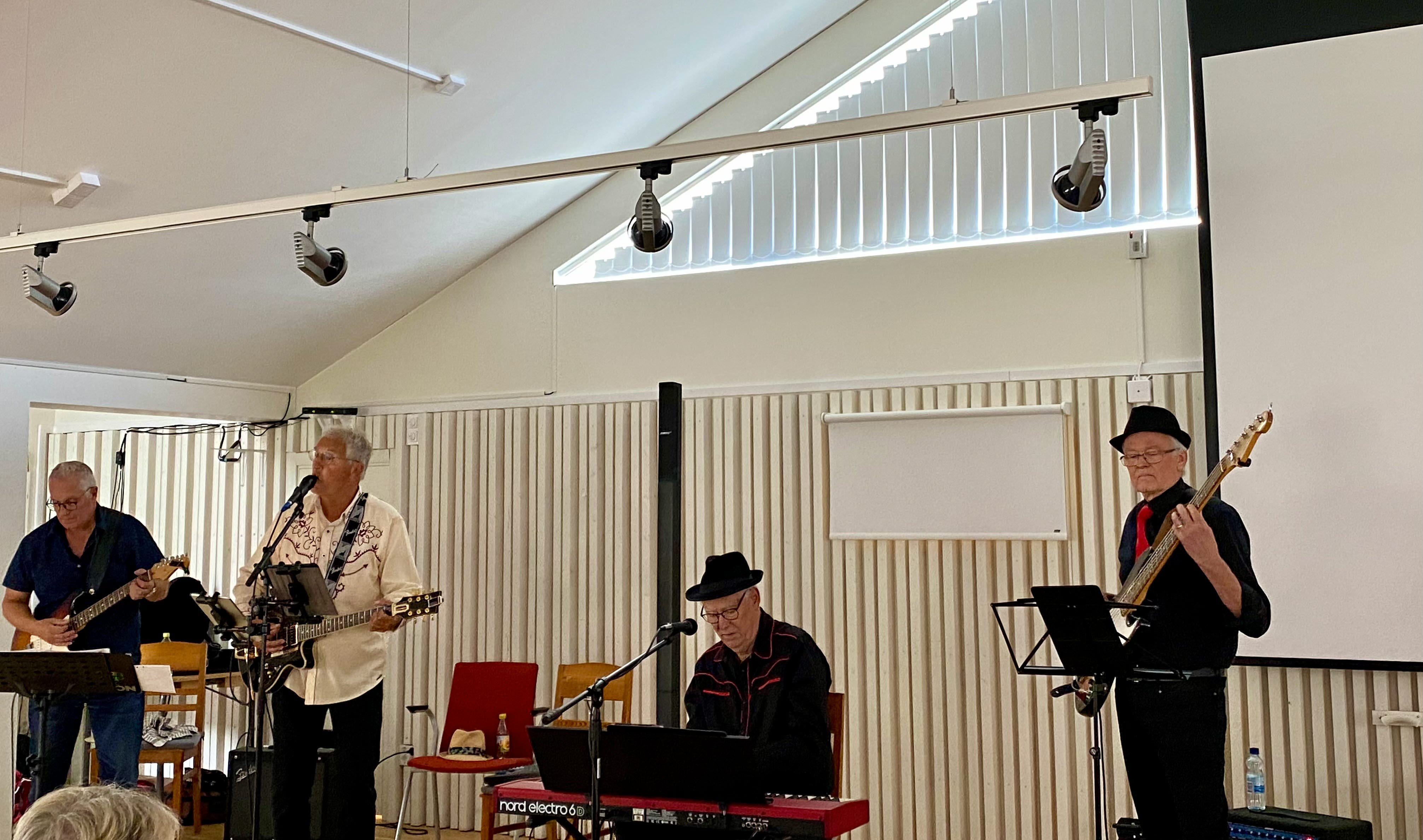 Rock-Lelles nya band Oldtimers inledde med ett varierat musikprogram. Musicerade gjorde Stefan Ekholm, Lennart "Rocklelle" Roos, Bengt Larsson och Hans-Erik Nilsson med den äran!