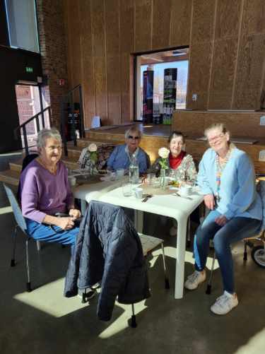 En solig vårdag träffades vi i det trevliga caféets ljusa lokaler, med högt i tak på alla sätt. Flytten till Resecentrum är tillfällig och beror på ombyggnadsarbeten i gamla simhallen. Cafépersonalen gjorde allt för att vi skulle trivas och serverade oss med kaffe och dopp till rimliga priser.