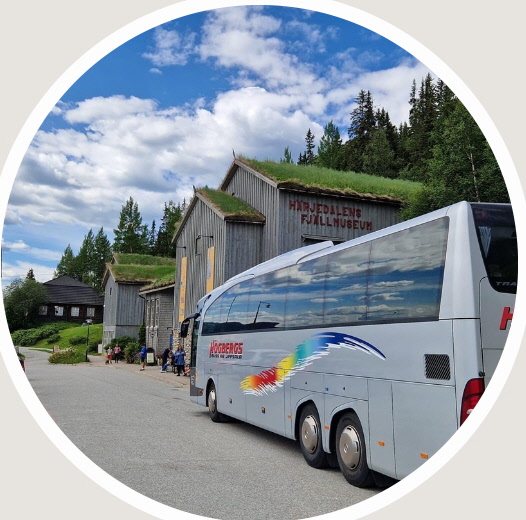 • Vår bekväma buss tar oss, bland annat, upp på Flatruet – Sveriges högst belägna väg som går över en kalfjällsplatå på 975 m.ö.h. Vägen invigdes den 11 juli 1938.