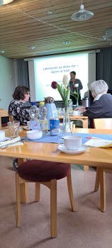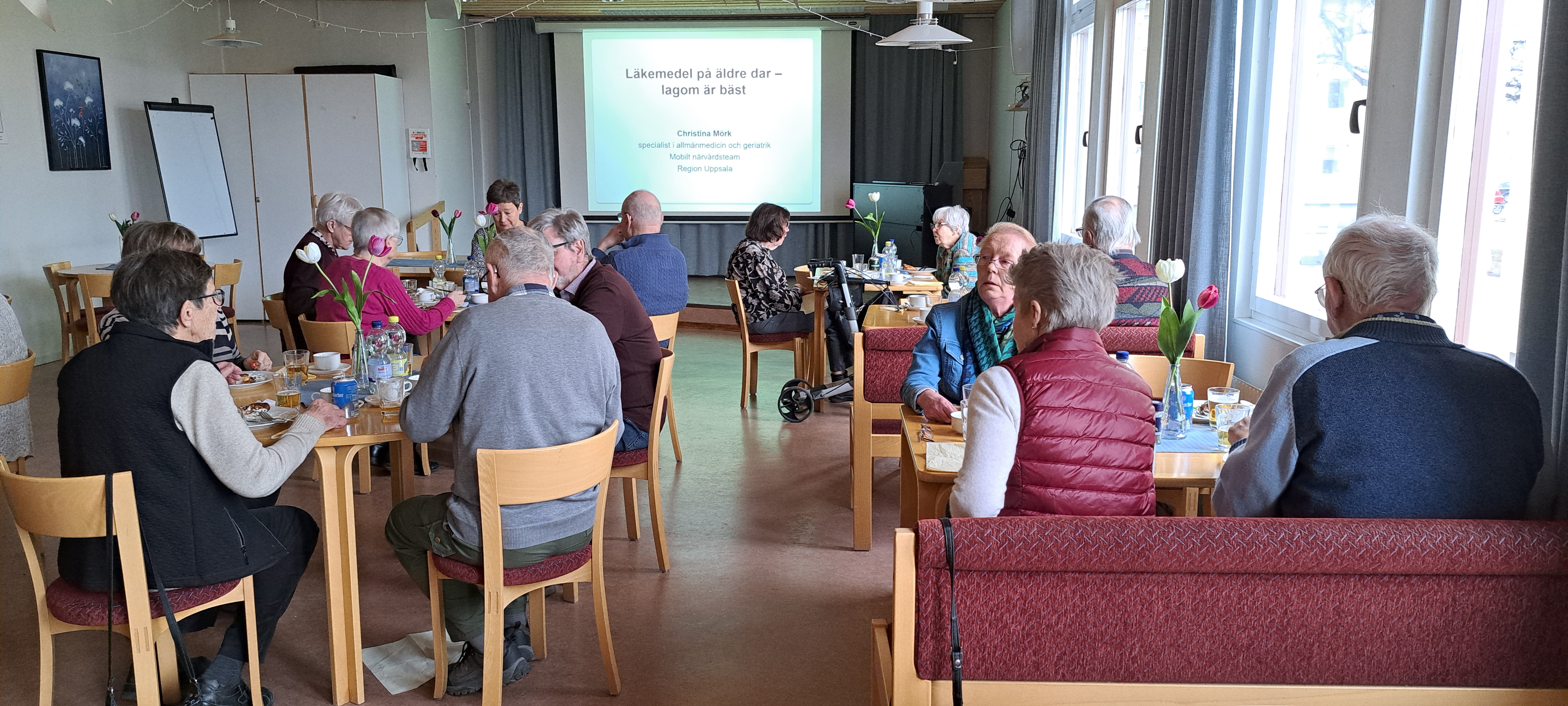 Vid kaffet informerade dagens gäst, dr. Kristina Mörck verksam inom mobila teamet, om äldrevård. Teamet arbetar med akuta och planerade besök i hemmen och på vårdboenden.