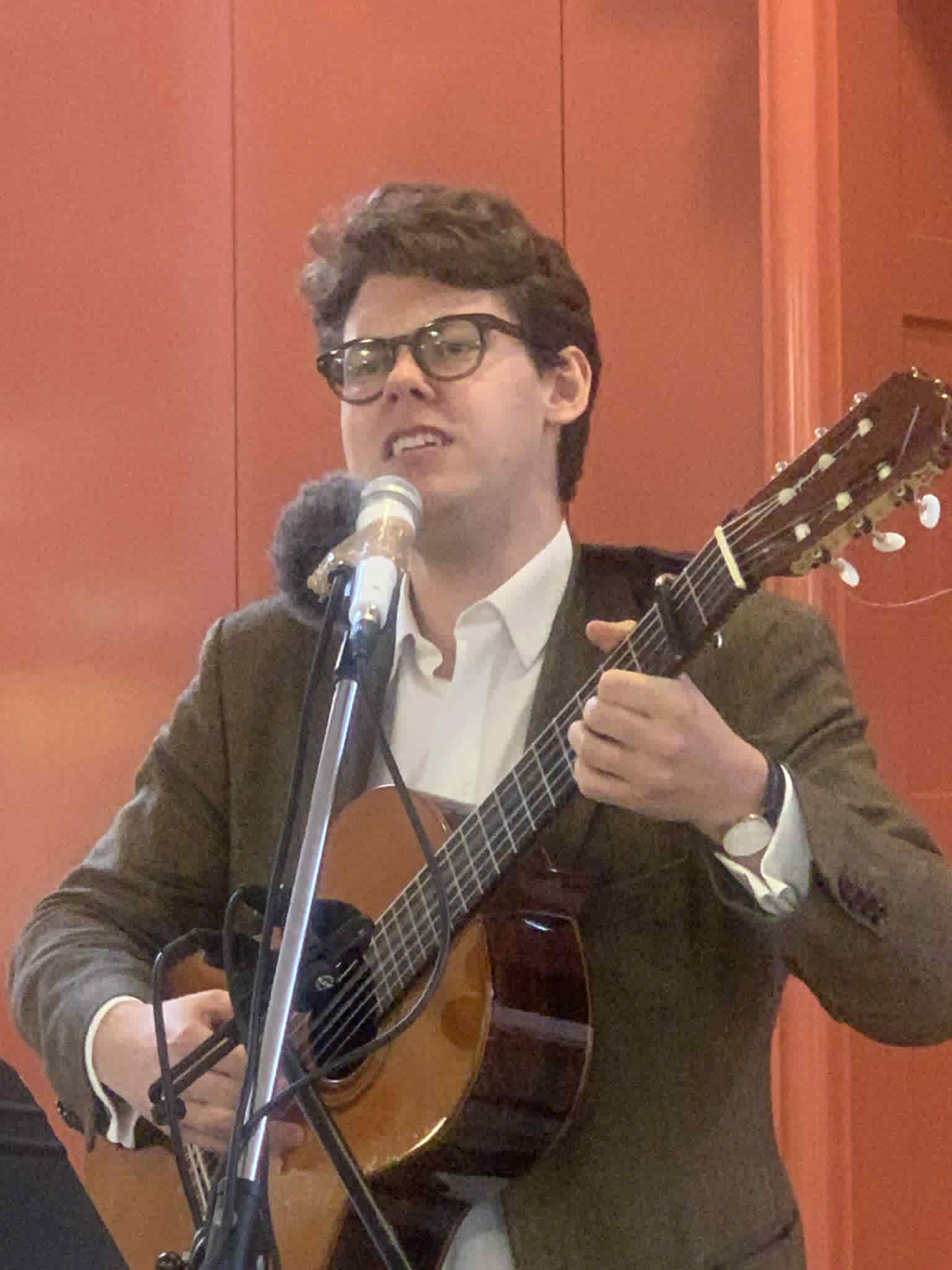 Ett välbesökt möte välkomnade William Sundman Sääf som spelade och sjöng sånger av Bellman, Taube, Dan Andersson, Albin Lee Meldau med fler, och även några egna alster. Han fick stående ovationer och även varma applåder när han senare lämnade oss för att åka hem till Stockholm igen.