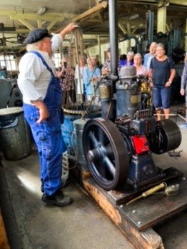 Dagsresan började med besök på Pythagoras industrimuseum som visar tändkulemotorernas historia. Resan fortsatte mot Furusund där Michael Blum guidade och underhöll och där serverades också en god lunch.