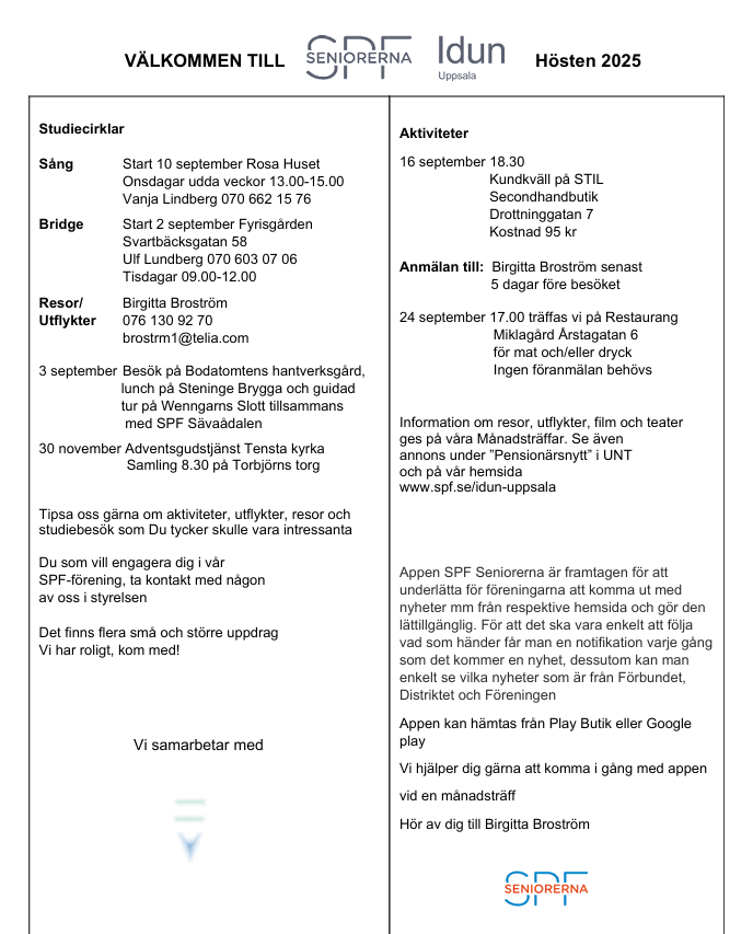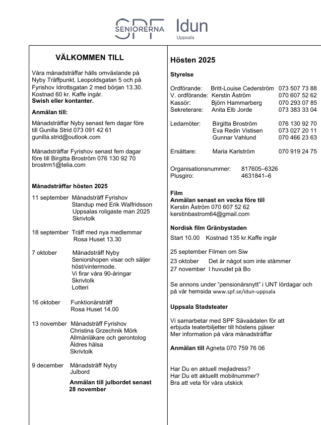 VÄLKOMMEN TILL SPF Idun Uppsala, Hösten 2025