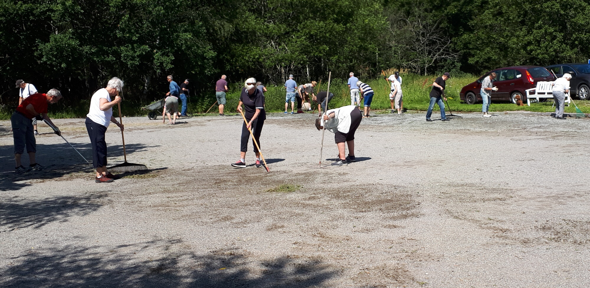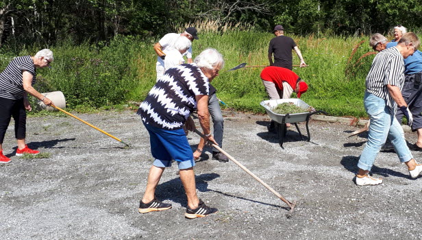 Vi skrattade och krattade.