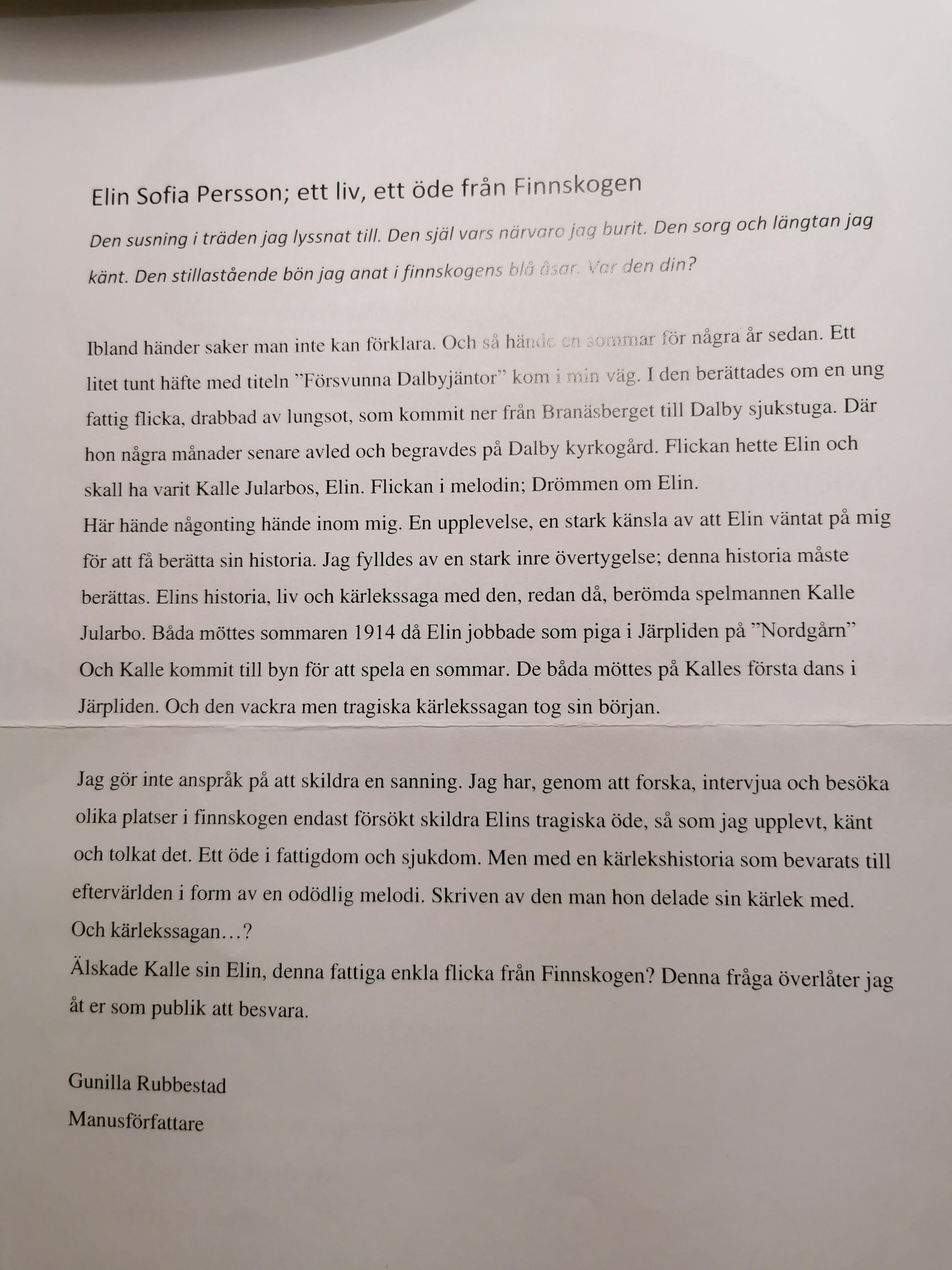 Bakgrundsbeskrivning till Drömmen om Elin.