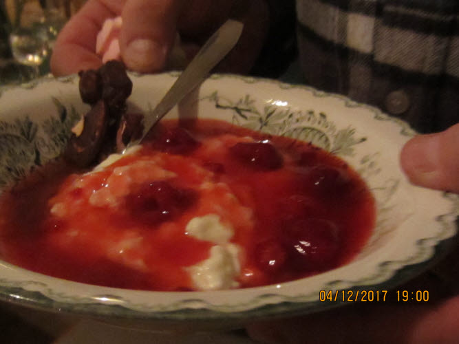Därefter var det dags att hugga in på maten. Ett julbord som intet saknade. Hemlagat, vällagat och välsmakande! Detta följdes av ett efterrätts- och gottebord med klassisk ris á la malta och gotter av alla de slag. Och kaffe förstås.
