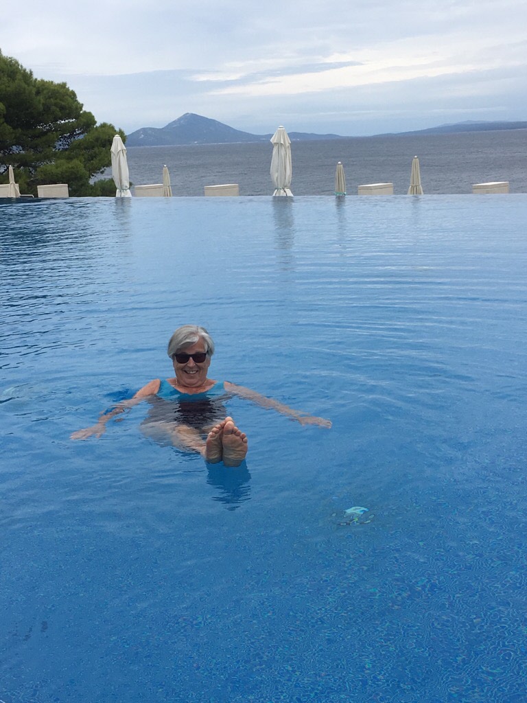 Astrid hade gott om plats i en av de stora poolerna och fin utsikt över havet.