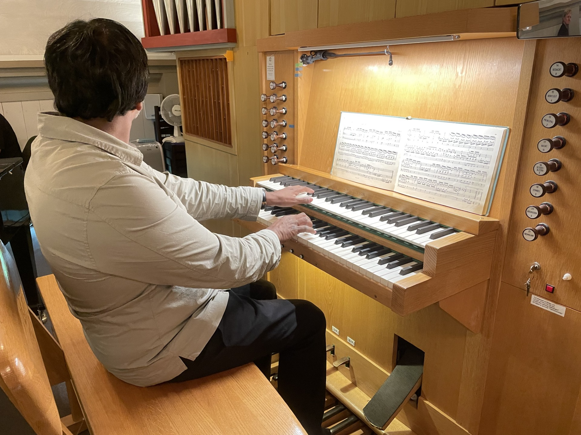 Kyrkomusiker Johnny Larsson tog över och pratade lite till om orgelns funktion. Han avslutade med ett par musikstycken, Bach och Värmlandsvisan. Mycket njutbart!