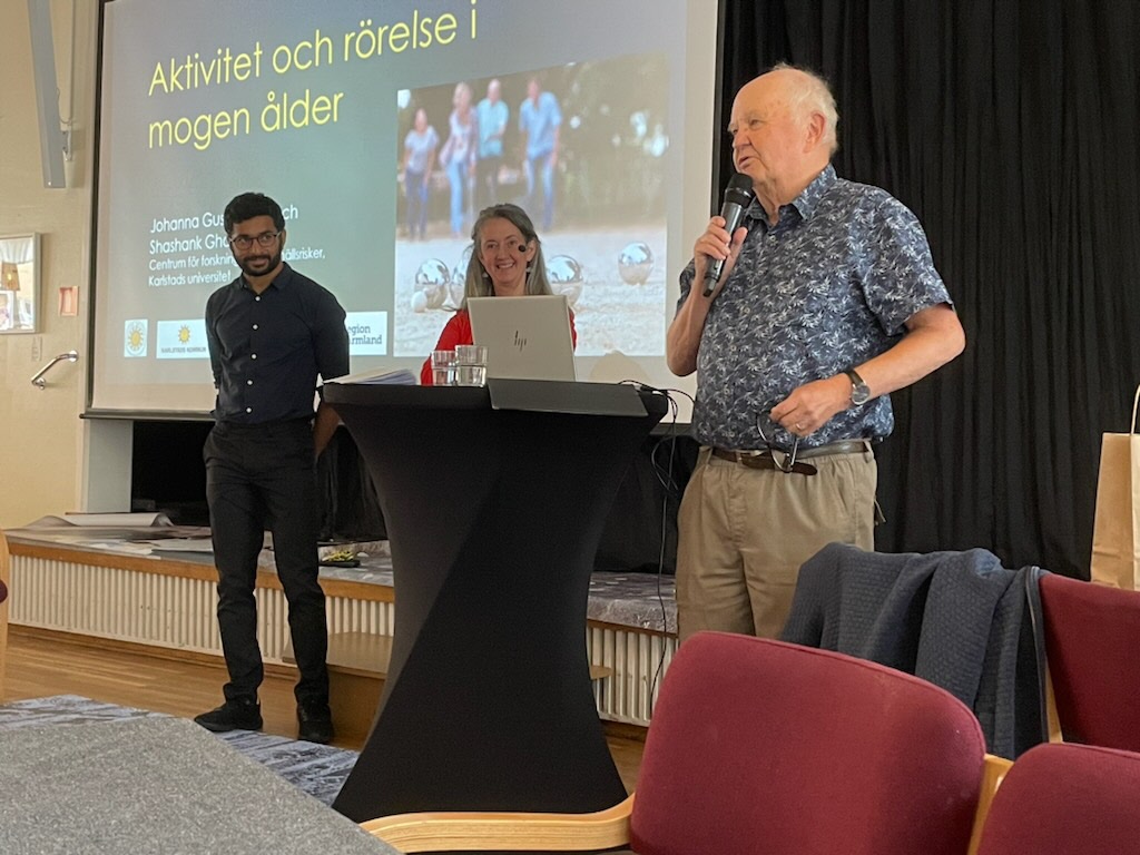 Som vanligt inledde vår ordförande, Bengt Tingdahl med att hälsa föreläsare och gäster välkomna till dagens månadsmöte. Han läste sedan en AI-genererad dikt med viss bearbetning så den skulle passa SPF Hammarö. Därefter presenterades Johanna Gustavsson och Shashark Ghai från Karlstads universitet. De arbetar vid Centrum för forskning om samhällsrisker.