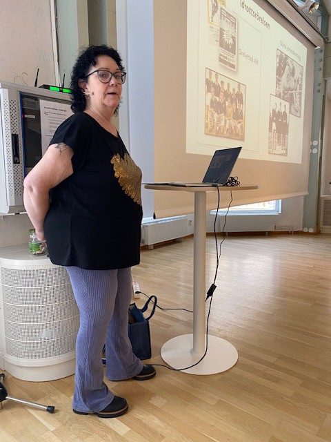 Doften från kaffe kändes i rummet, dags för en kopp med dopp, innan nästa gäst intog scenen. Elisabeth Wiklund från Folkrörelsearkivet, en fantastiskt inspirerande berättare. Alla är lika välkomna att ta del av länets folkrörelsearkiv. Har varit aktivt sedan 1984. Elisabeth berättade på ett mycket intressant och inspirerande sätt om Idrottsrörelsen, Väckelserörelsen, Arbetarrörelsen, Byarkiven och mycket annat som trollband oss åhörare. På vägen hem från denna eftermiddag, som fyllde oss med intryck, kunskap och underhållning, kunde vi inte låta bli att fundera över hur mycket vi kan få en sån här träff med gemenskap och lärdom.
