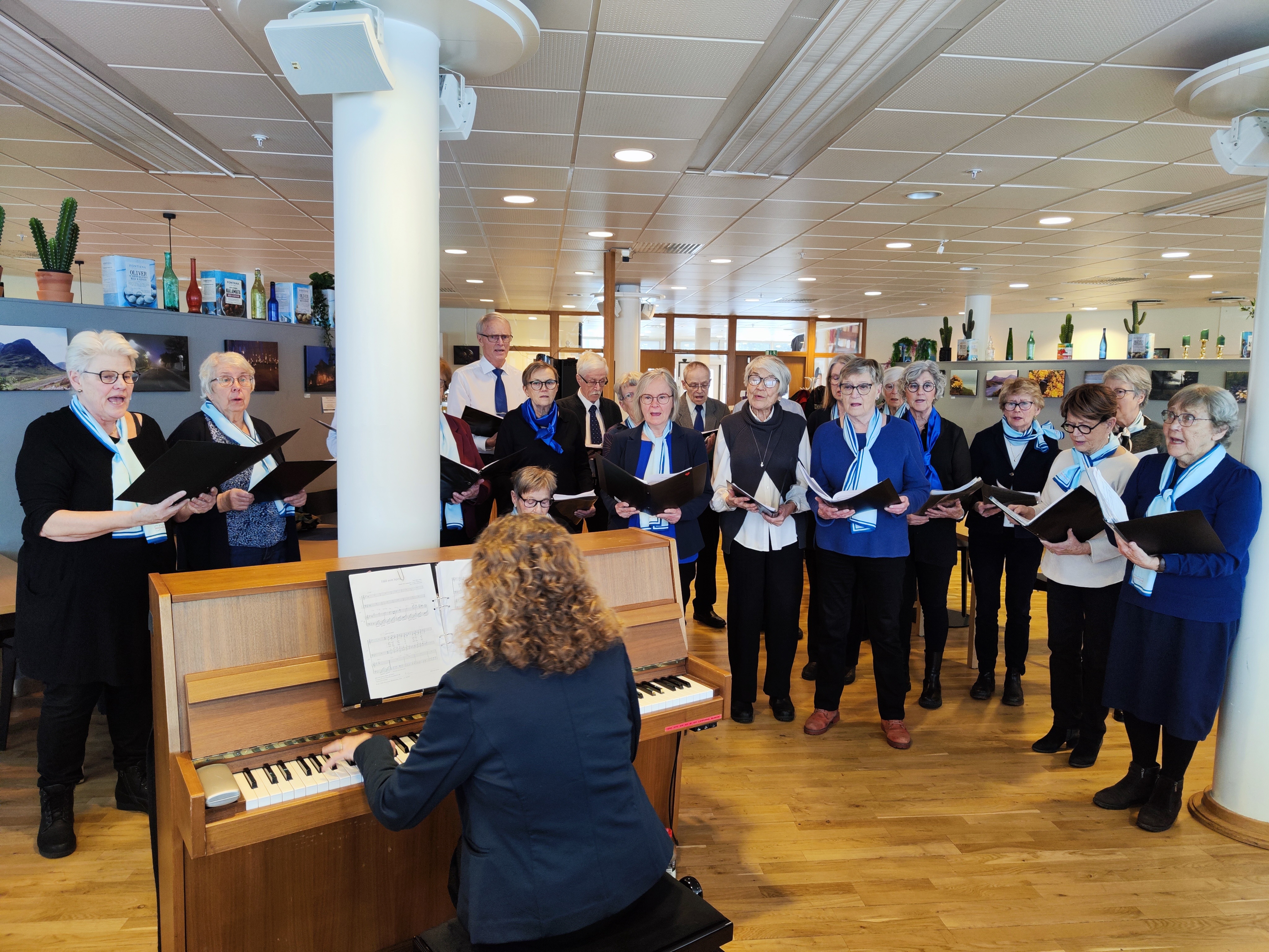 Vi fick även uppleva deras sång- och spelkompetens; Stad i ljus, Potpurri av Sven Ingvars, Fly me to the moon m fl. "Sång är bra för Kroppen och Knoppen" konstaterade de. Det kände vi som var där. "Det är gott att leva ".