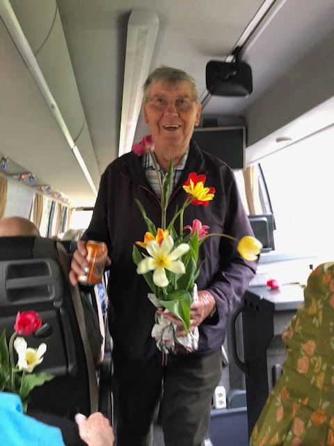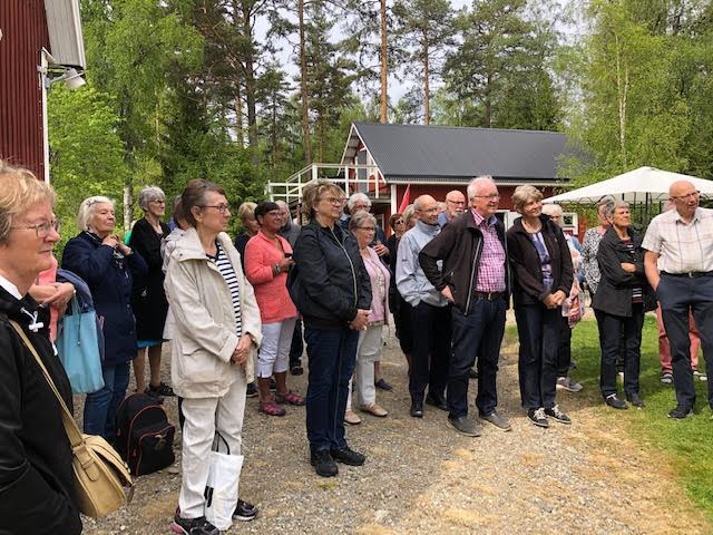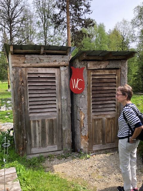 Nu var det dags att stiga ombord på bussen men först måste man tömma blåsan. Många blev nog lite snopna vid besökte utedasset. Förvånat tittade dom på varandra. "Det hördes som om någon spolade". Jo alldeles riktigt. Riktiga toaletter, rinnande vatten i handfatet. Nu började bussen rulla mot Umeå. Väl på bussen berättade Per-Axel Staflund som har ett brinnande intresse för att vilja dela med sig av sina intressanta berättelser och historiken om de olika bygderna som passerades. Det kändes som en enorm kunskapskälla han bara öste ur.