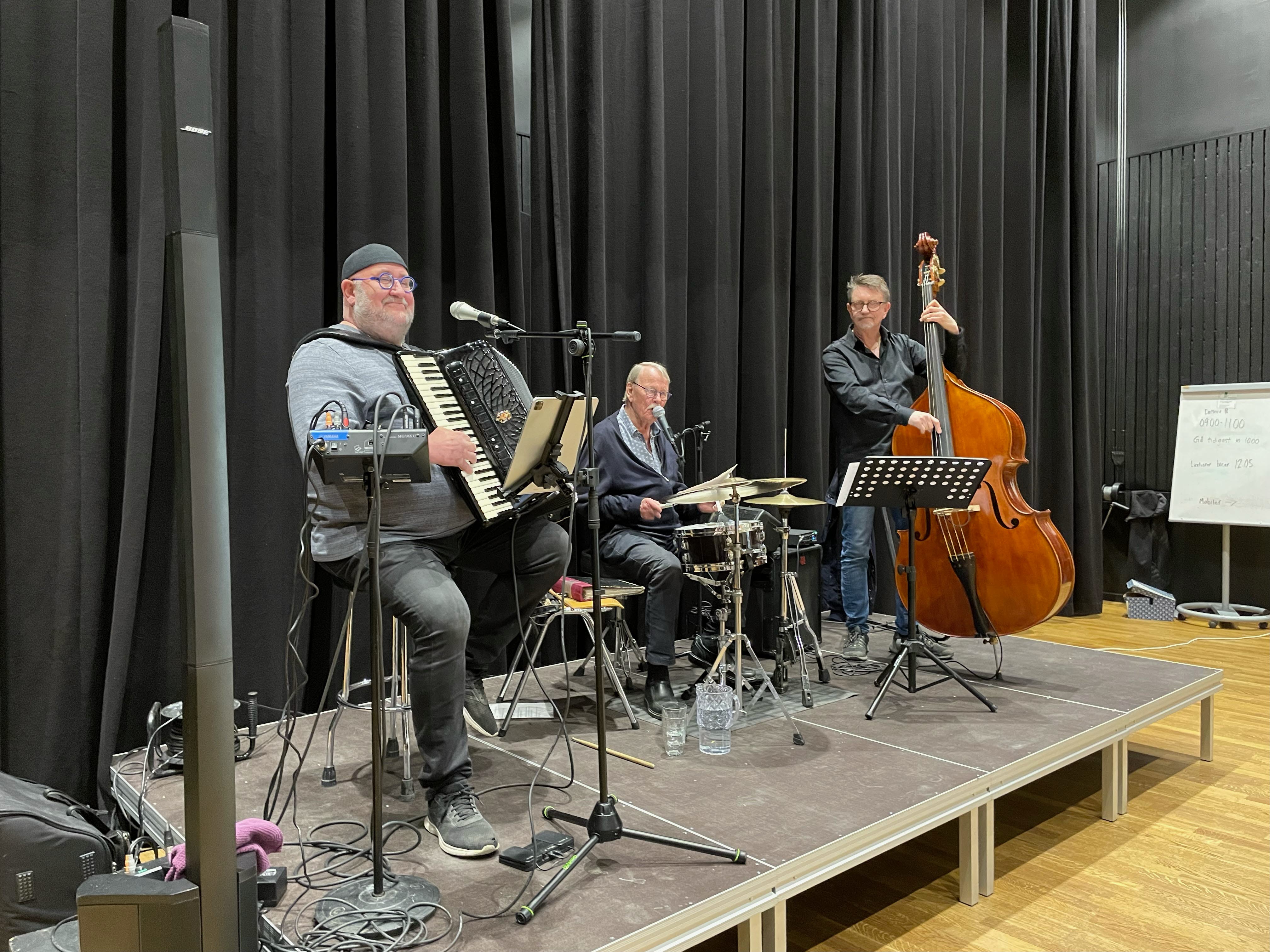 För underhållningen svarade Mickes Combo. I trion ingår Micke Enström dragspel,Rolf Lind trummor och sång samt Arne Eriksson kontrabas. De bjöd på en rad härliga melodier och inledde med Sunny Side of the Street, därefter följde Cornelis Somliga går med trasiga skor, Andrew Walters Afton vid Solvik och Toots Thielemans Blusette. Micke drog några historier mellan låtarna, som lockade till skratt. Åhörarna fick bland annat höra vad en företagsam papegoja kan ställa till med.