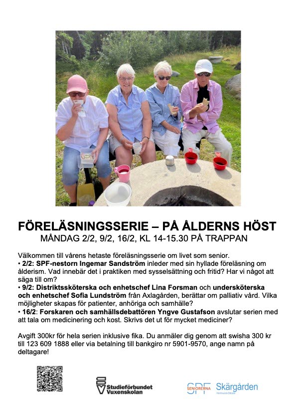 Årets nyhet, en föreläsningsserie i tre delar, "På ålderns höst. Läs mer i nedanstående affisch!