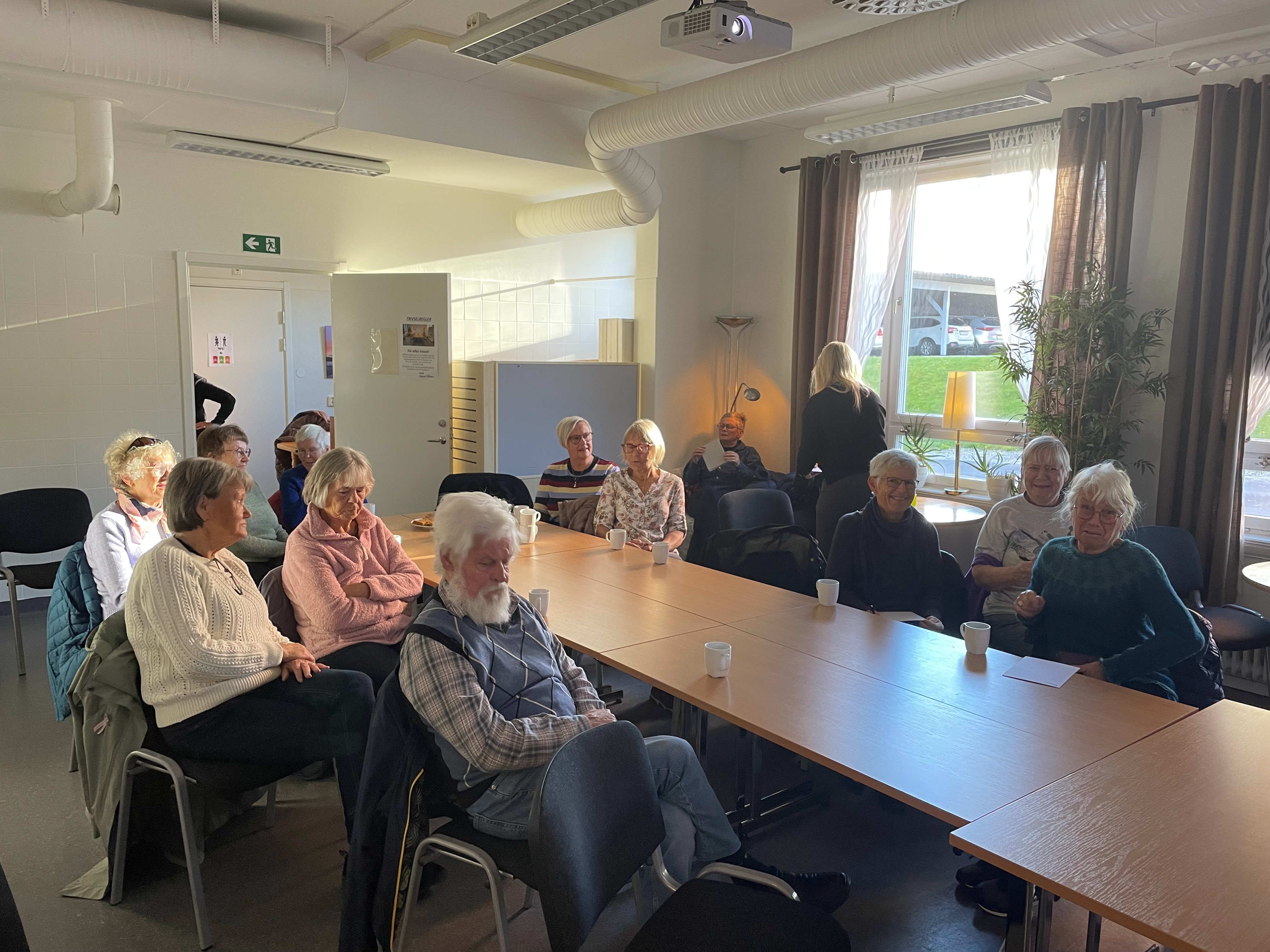 16 st SPF medlemmar hade sökt sig till Lokalen på Vuxenskolan där kaffekoppar och kakor var framdukade.