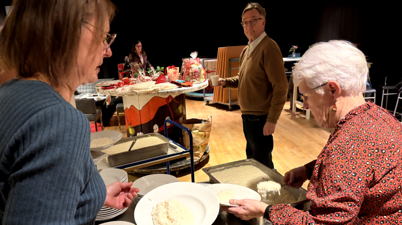 När luciatåget lämnat lokalen var det dags för den sedvanliga efterlängtade jullunchen med gröt och tunnbrödsmörgås med skinka. Dagen innan hade några av föreningens damer bakat tunnbrödet i Vilhelmina bagarstuga. Kaffe och god kaka bjöds det också på.