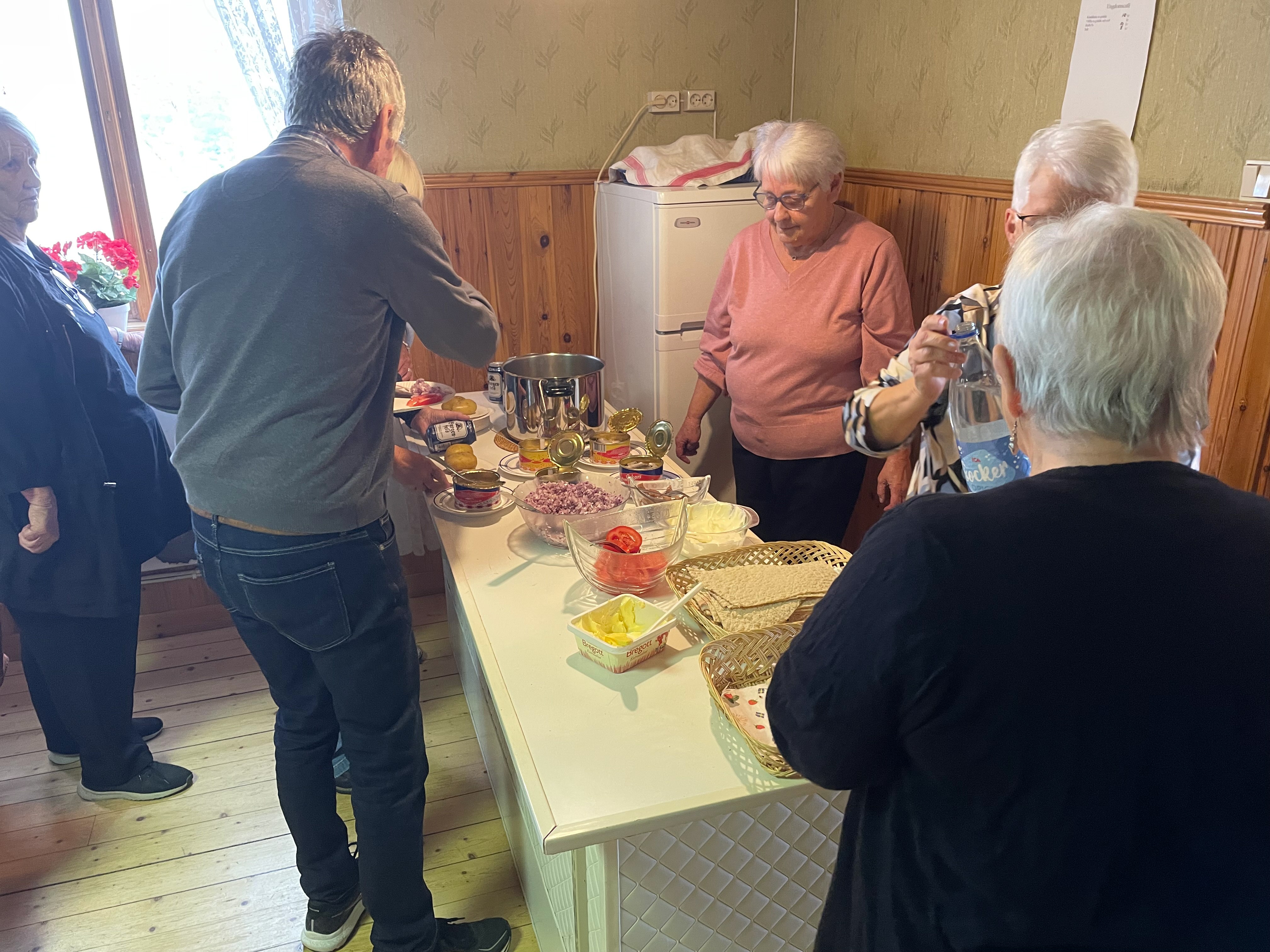Doften av surströmming spred sig i lokalen redan när Lars, ordförande, hälsade alla välkomna och bjöd in att ta för sig av det av ”köksgruppen” dukade bordet av surströmming med tillbehör. Förutom potatis, lök, tomater, creme fraich fanns där även hembakt tunnbröd.