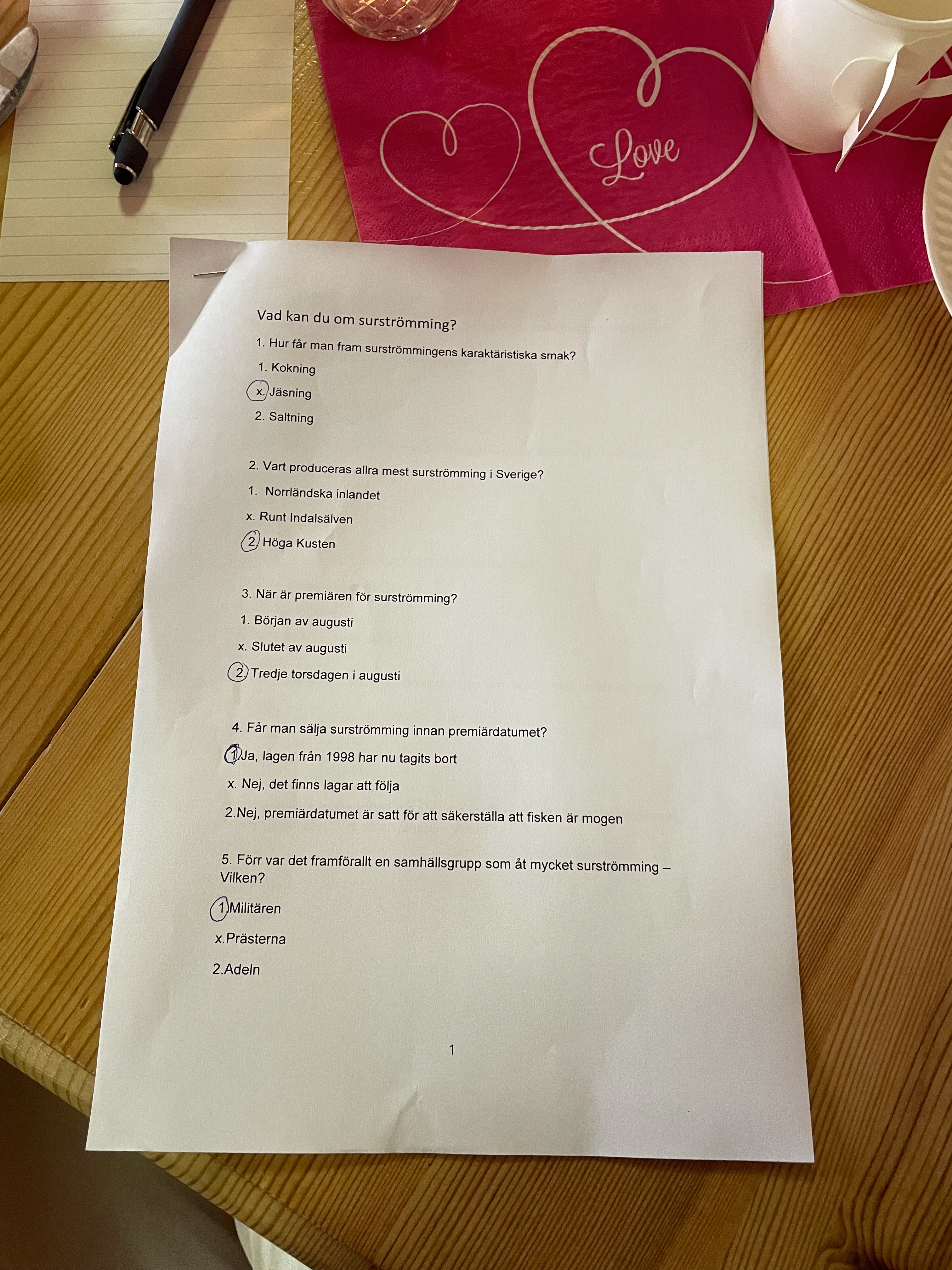 På borden fanns ett quiz där ämnet var surströmming. Hur många varumärken av surströmming finns? var en av frågorna.