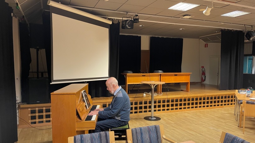 Fler än hundra medlemmar deltog denna gång. Efter att ha köpt sina lotter slog de sig ner vid de dukade borden, medan Mats Landin bjöd på underhållande pianomusik.