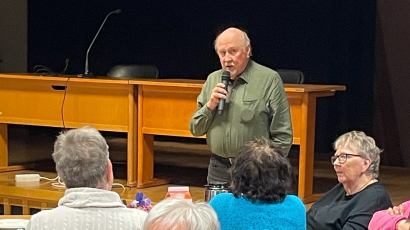 Johnny tackades för sitt kåseri med applåder och en present med Västerbottensåpa.