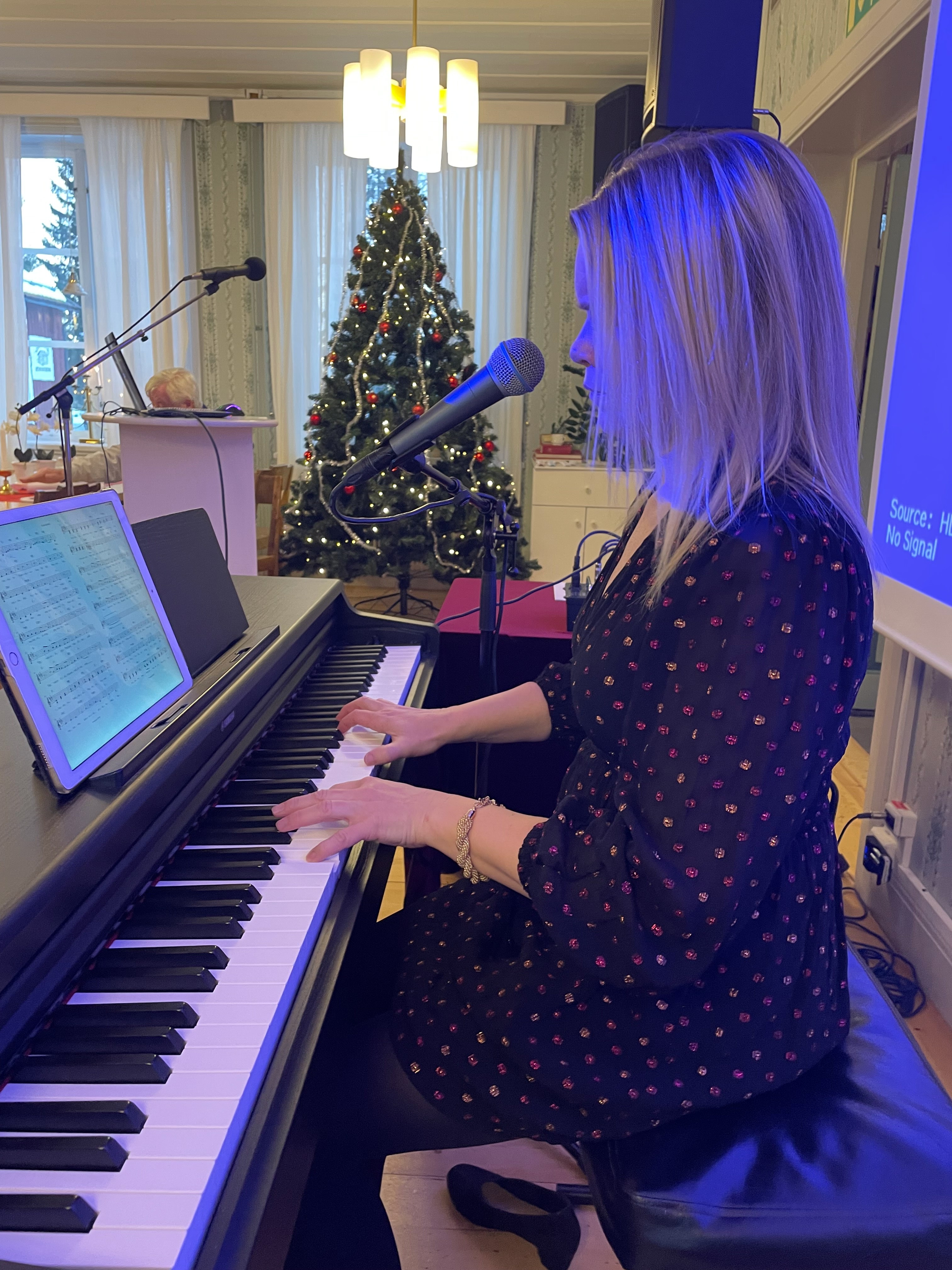 Elin boende i Klabböle utbildade sig till kantor i Nordmaling för ett antal år sedan. Numera jobbar hon som musiker på heltid. Hon spelar på alla möjliga tillställningar, allt från krogar, kyrkor, äldreboenden, fester och föreningsträffar.
