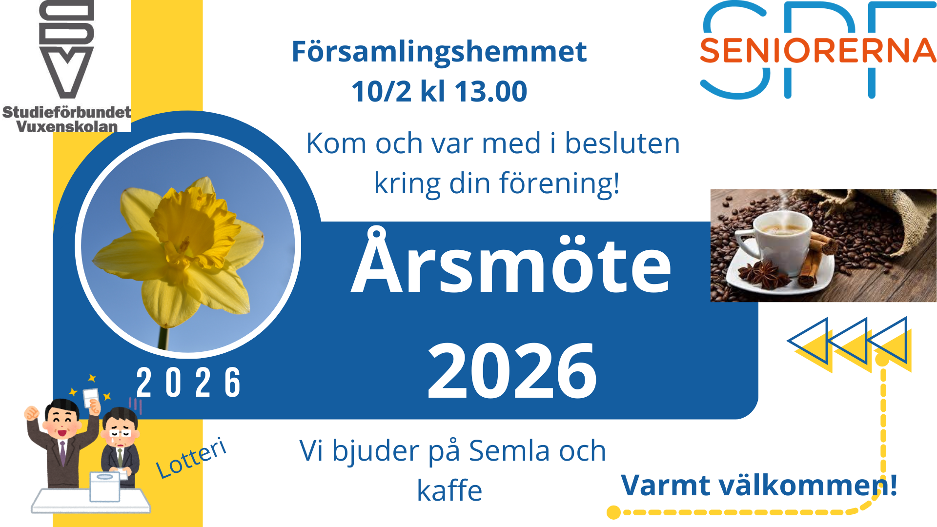 Sedvanliga årsmötesförhandlingar. Kom och var med i besluten kring din SPF-örening.