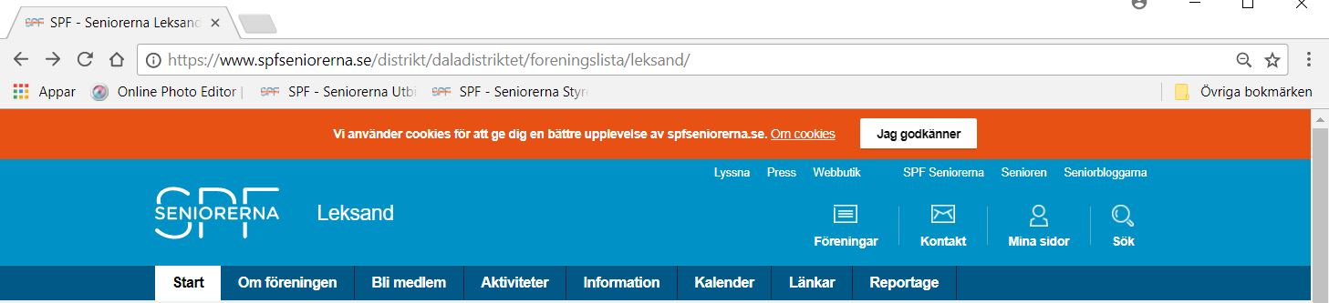 För att underlätta administrationen av hemsidan kan man lägga in bokmärken i bokmärkesfältet för t.ex. bildredigeringsprogram, förbundets utbildningssida, länkar till dolda sidor, etc, se bild.