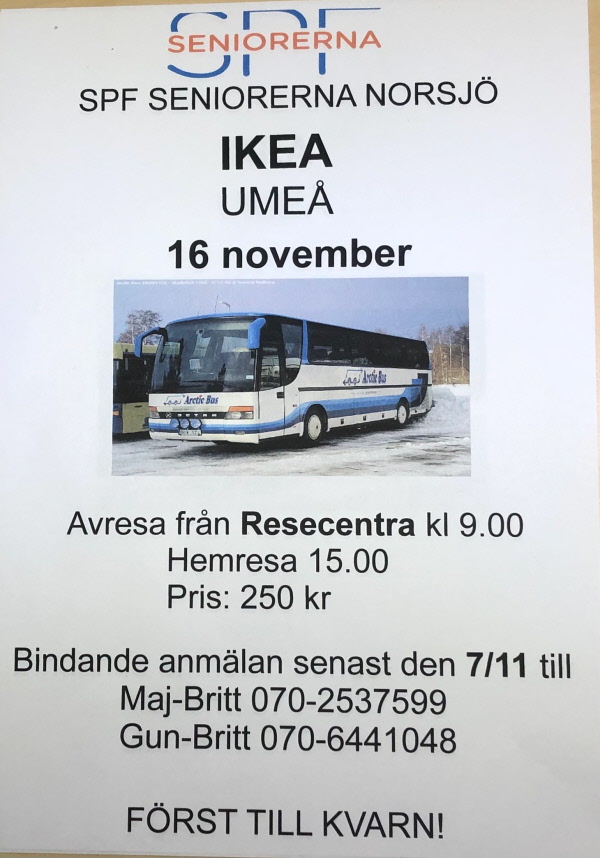 Avresa från Resecentra kl. 09.00 Hemresa kl. 15.00