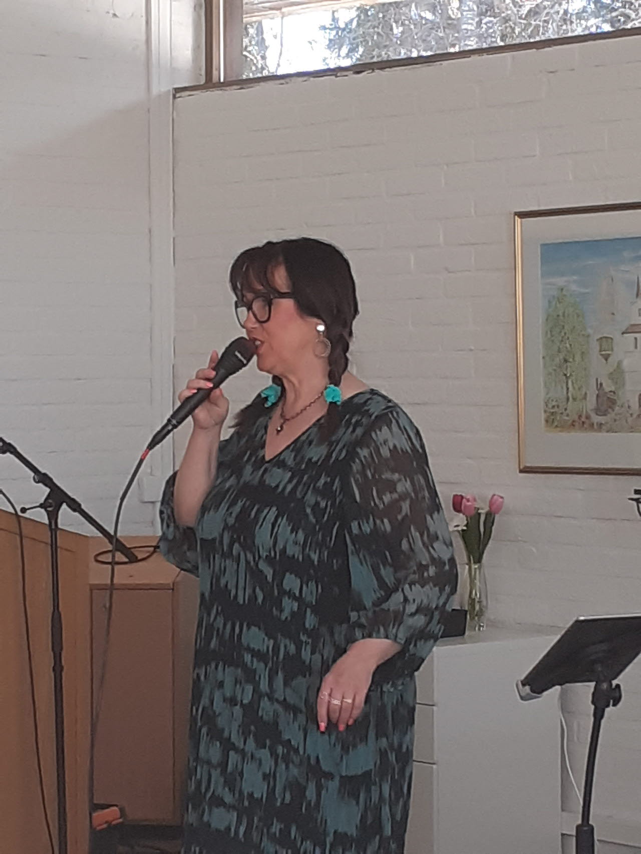 Agneta berättade att hon växte upp i Hörnsjö. Redan som 11-åring gick hon en gammeldanskurs i byns bygdegård. Hon lärde sig folkdans också innan det blev dans för hela slanten. Hon har också sjungit sedan hon var barn. Blev helt såld när hon 1975 var med på en ABBA-konsert. Fick ett mejl från en kille i Australien, blev intervjuad av honom, vilket var väldigt smickrande. Han höll nämligen på att skriva en bok om ABBA. Agneta rymde som barn med en kompis till dans i Tre-sjö. Hade tält men saknade tältpinnar. De gick runt och tiggde en tältpinne lite här och var så de fick upp tältet. Men nu bar det sig inte bättre än att Agneta mamma hade upptäckt rymningen och kom och gjorde ett abrupt slut på det äventyret. Agneta bjöd nu på country, som egentligen var föregångare till dansmusiken My next broken heart. Fortsatte med Siw Malmqvists Tunna skivor, inbjöd alla att sjunga med. Leka med elden och gamla fina Tror du att jag förlorad är, och Hälsa Mikael från mig, för att nu nämna några. Som avslutning Cliff Richards Lucky lips; på svenska Slit och släng, och Tuffa flickor. Sedan 1989 sångerska på heltid, har bl a turnérat med Kicke Danielsson. Turnélivet har inte alltid varit en dans på rosor. Agneta minns en vinter under en turné i Norrbotten när värmen i den stora turnébussen fallerade en hel vecka och hon höll formligen på att ”frysa ihjäl”. Firar snart 50 år på scenen och kommer fortsätta länge än. Bland annat med uppträdande i hyttan Olofsfors pingstdagen. Lotter såldes och många fick ta del av det digra vinstbordet med till största delen ätbara vinster. Kenth avslutade med att tacka Agneta och damerna i köket och alla som slutit upp. En trevlig eftermiddag var till ända. text Aina Nygren