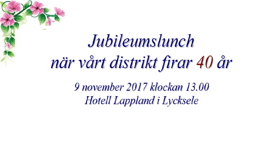 I samband med ordförandekonferensen den 9 november så passar vi på att fira distriktets 40 års jubileum.