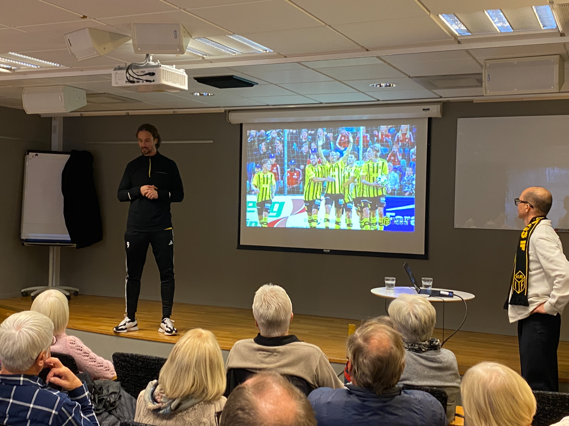 50 st Freja medlemmar fick avnjuta en god lunch med efterföljande information i hotellets konferensavdelning av KUBIKENBORGS IF:s ordförande Mikael Friman och fotbollsspelaren Linus Hallenius.