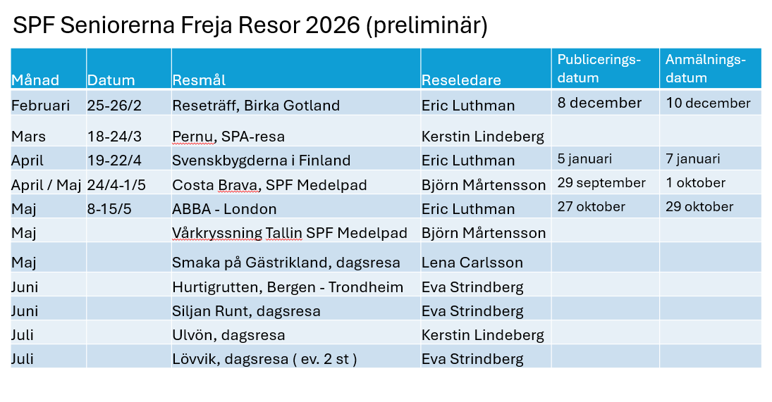 Resan är fullbokad. Reservlista finns.