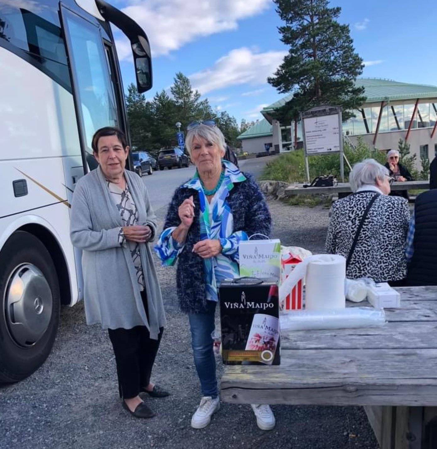 Högakustenbron där det serverades kaffe, vin och varmkorv. Därefter startade Gun-Britt och Lena den