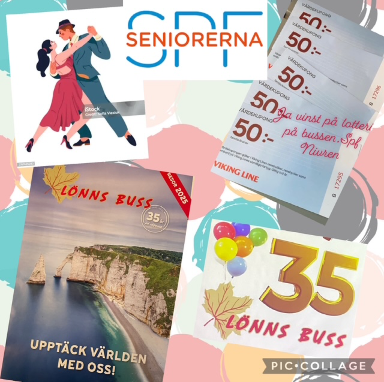 SPF Nivren har varit på den traditionella reseträffen med Lönns Buss. Vi välkomnades ombord av chefen själv Larsa. Det var väl tajmat då vår reseledare Lena hade förberett ett 35-års hyllande till Lönns Buss. Med ett hurrande och överlämnande av en flaska bubbel att dela med sin hustru.
