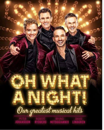Vi börjar resan med Buffémiddag på Svampen i Örebro. Buffén består av mangoglacerad fläskfilé med pepparsås, örtöverbakad lax med Sandefjordsås, potatisgratäng och kokt potatis, fem sorters sallader, mjuk kaka med vaniljsås, kaffe och te. Härefter åker vi vidare mot Conventum där vi får uppleva en fartfylld show med Peter Johansson, Bruno Mitosgiannis, David Lindgren och Robert Rydberg – tidigare del av den framgångsrika musikalen Jersey Boys. Showen börjar 19.30 och slutar ca 21.30.