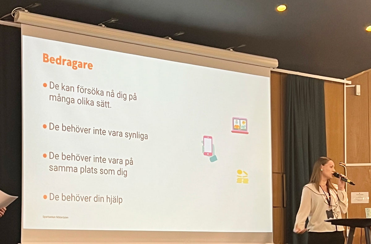 Därefter var det dags att överlämna till Sparbanken Mälardalen som informerade och svarade på frågor angående framtidsfullmakt, testamente och bedrägerier. Ämnen som ständigt är aktuella att ha koll på. Är man osäker ska man inte tveka att ta kontakt för avstämning, att man har gjort rätt och förstått vad det innebär.