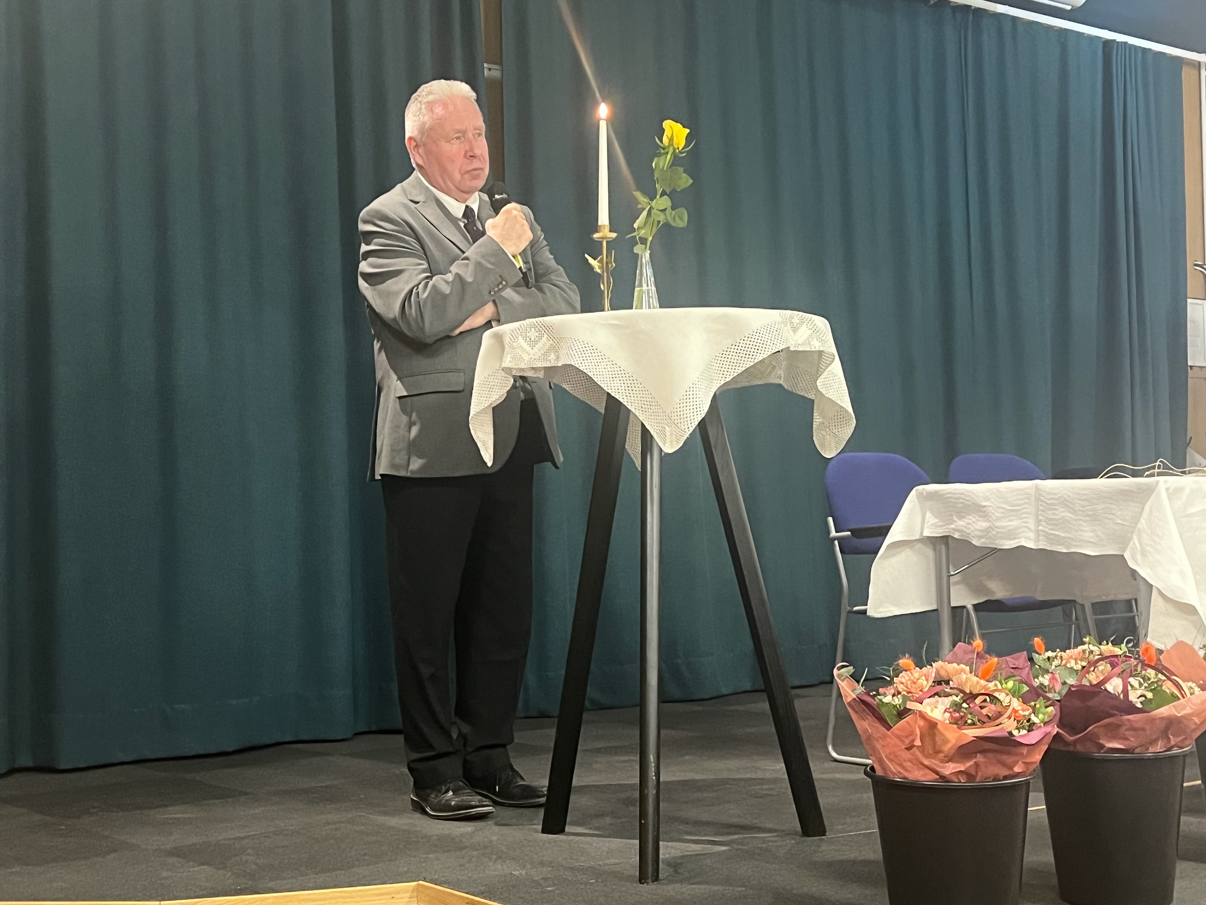 Mötet inleddes med parentation som genomfördes av Pär Johansson, Svenska kyrkan, för våra under året bortgångna medlemmar genom att tända ljus och läsa dikter av Alf Henriksson och Bo Zetterling.