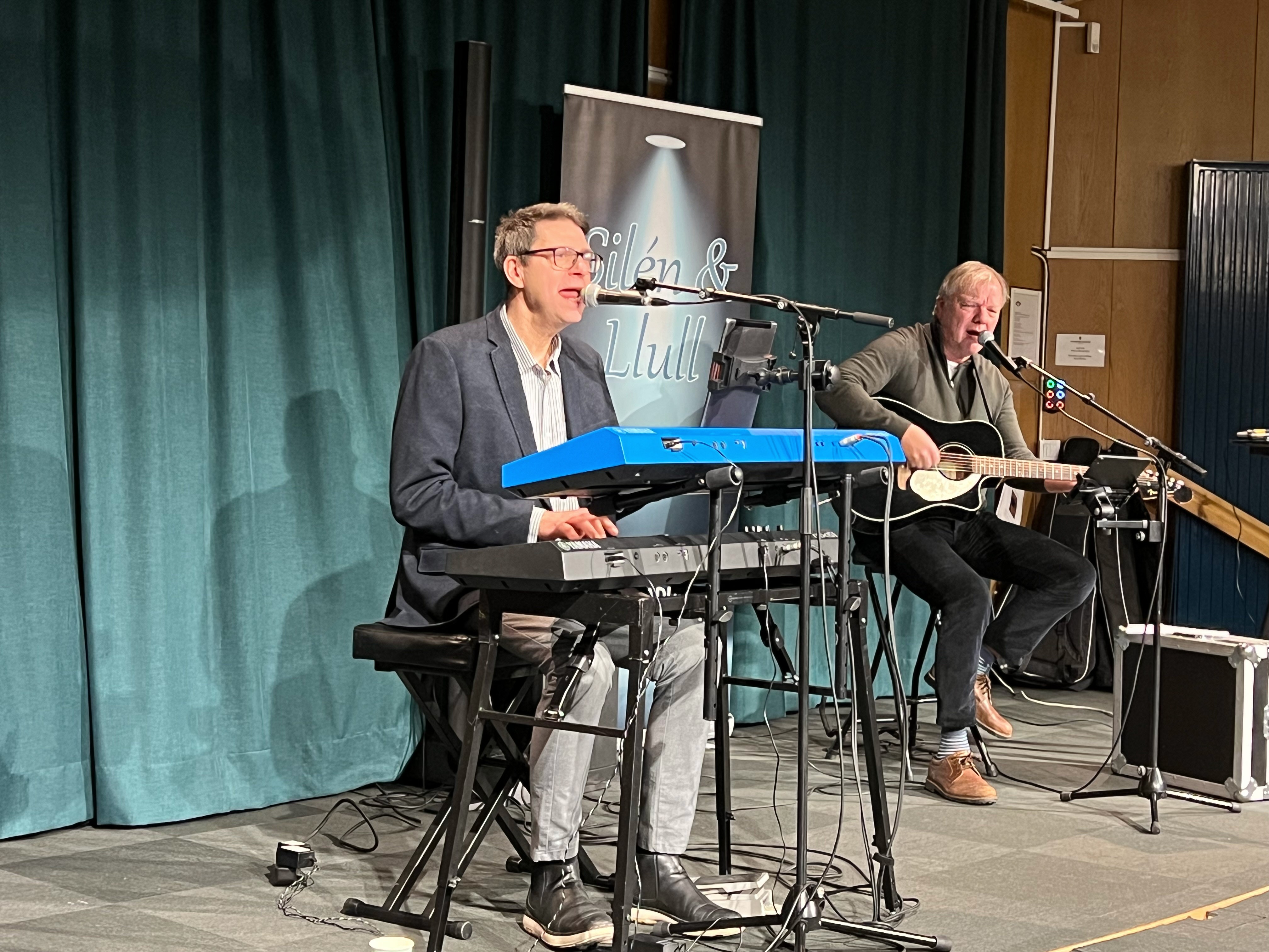 Därefter överlämnades till trubadurerna Silén och Llull, som spelade och sjöng många välkända melodier och texter, vilket gjorde att de flesta kände för att sjunga med. Efter en paus med fika, samkväm och sorl i salen, blev det en stund till med musik och sång.