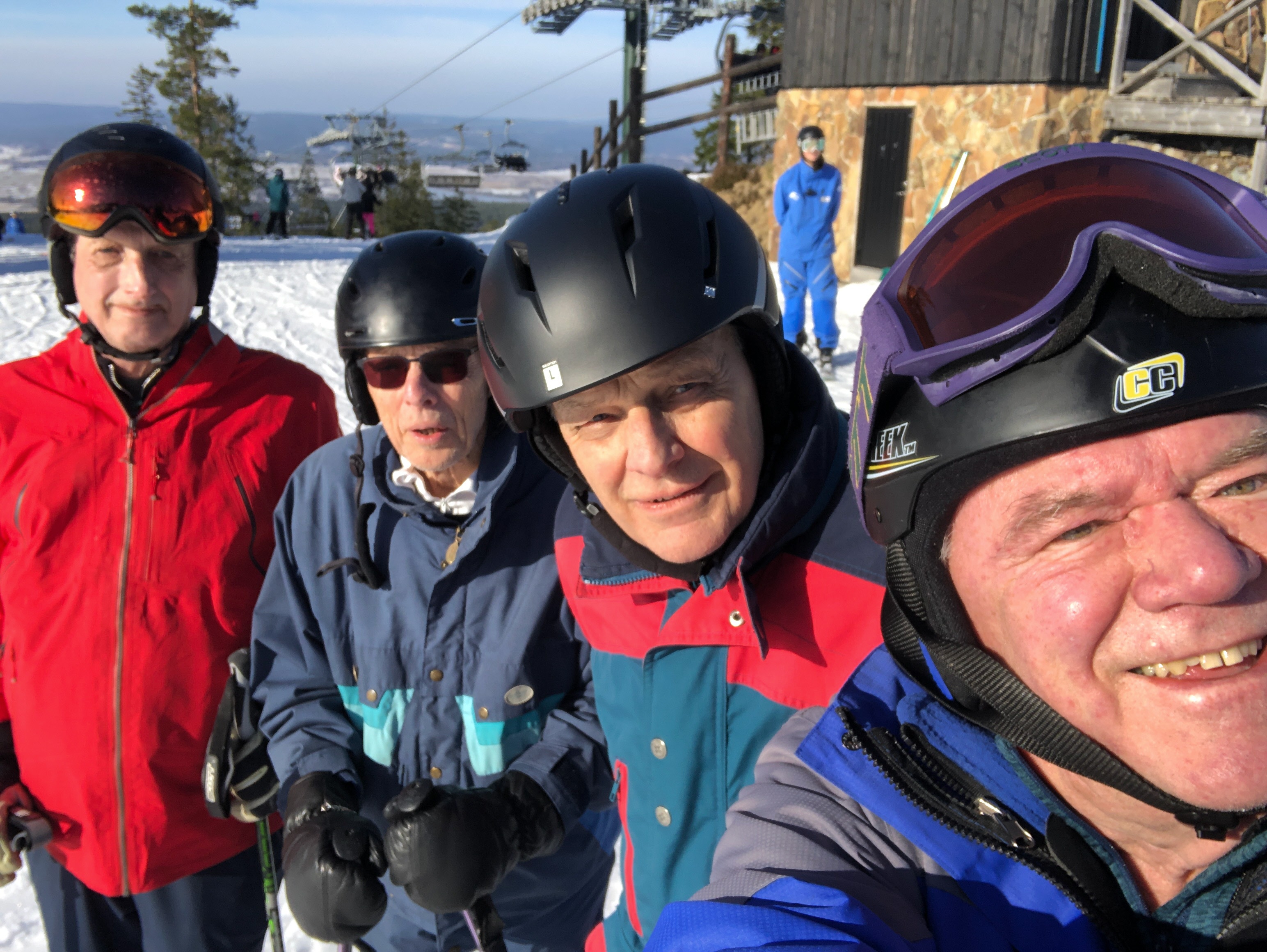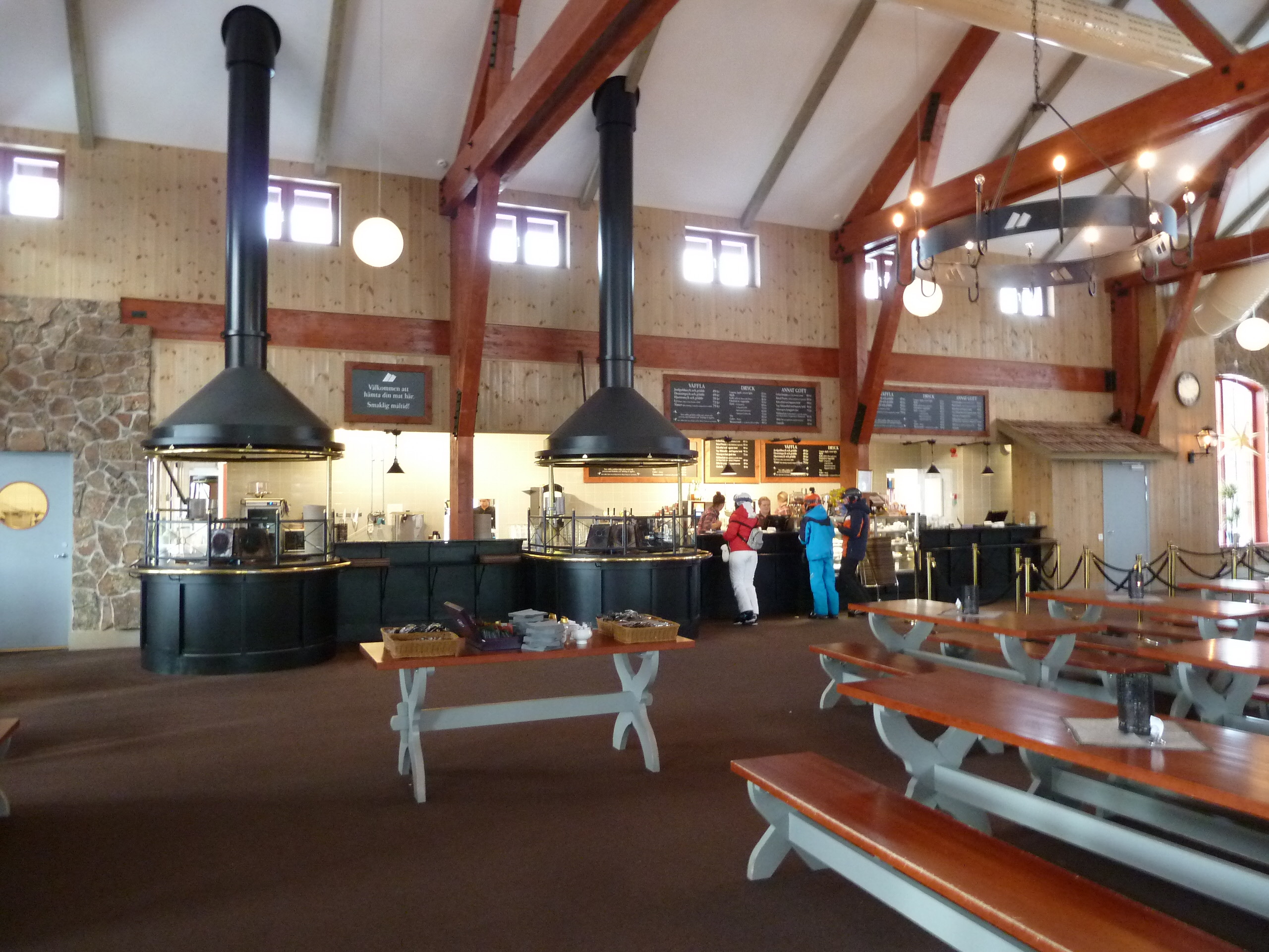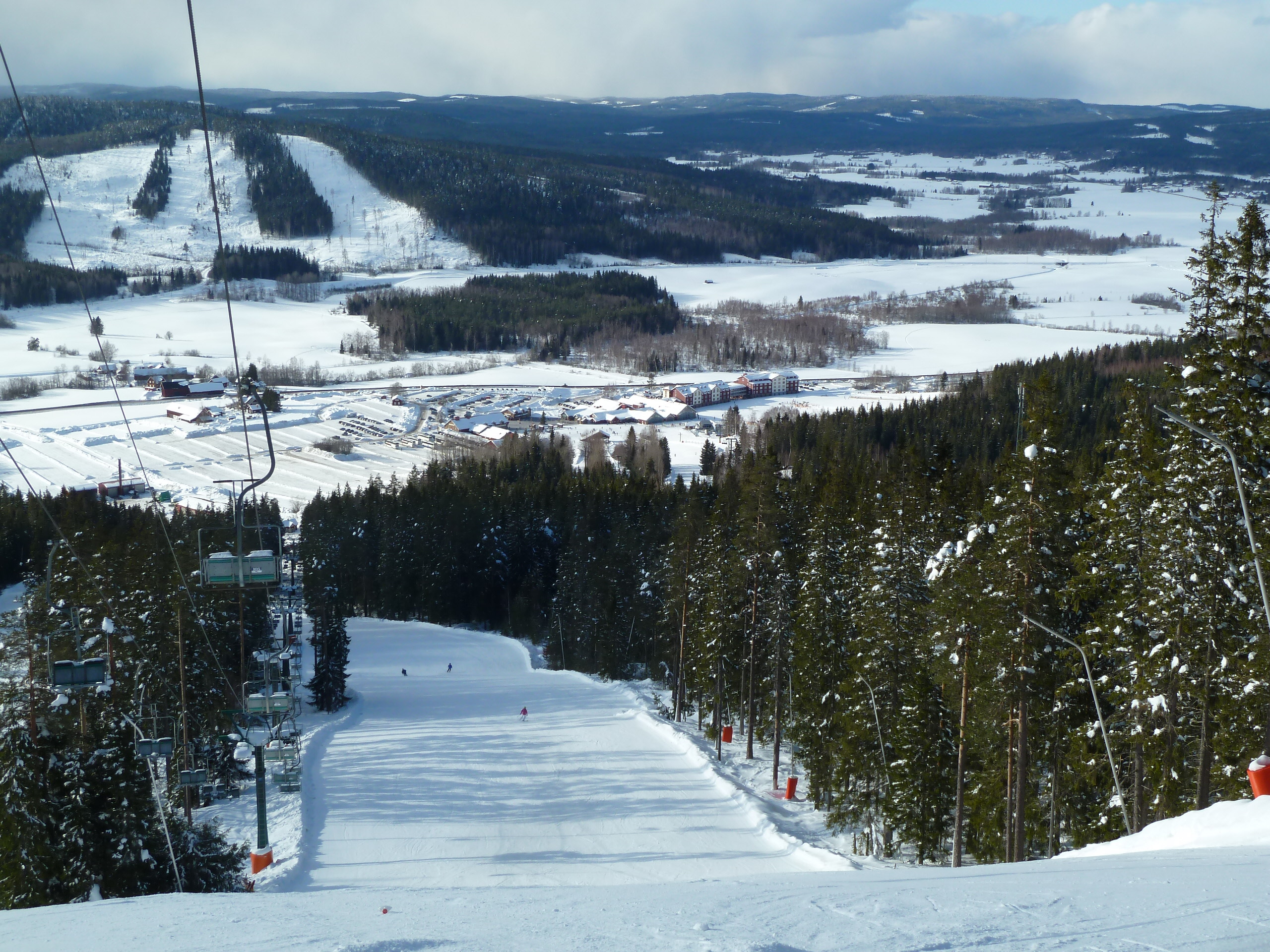 Medhavd fika intogs innan vi spände på oss skidorna och gav oss ut i backarna. Moderna stolliftar, 42 varierade nerfarter gör att det oftast är gott om plats i backarna. Vi hade sol och blå himmel hela dagen. Snön blev något tung på södra sidan av berget då solen värmde på.