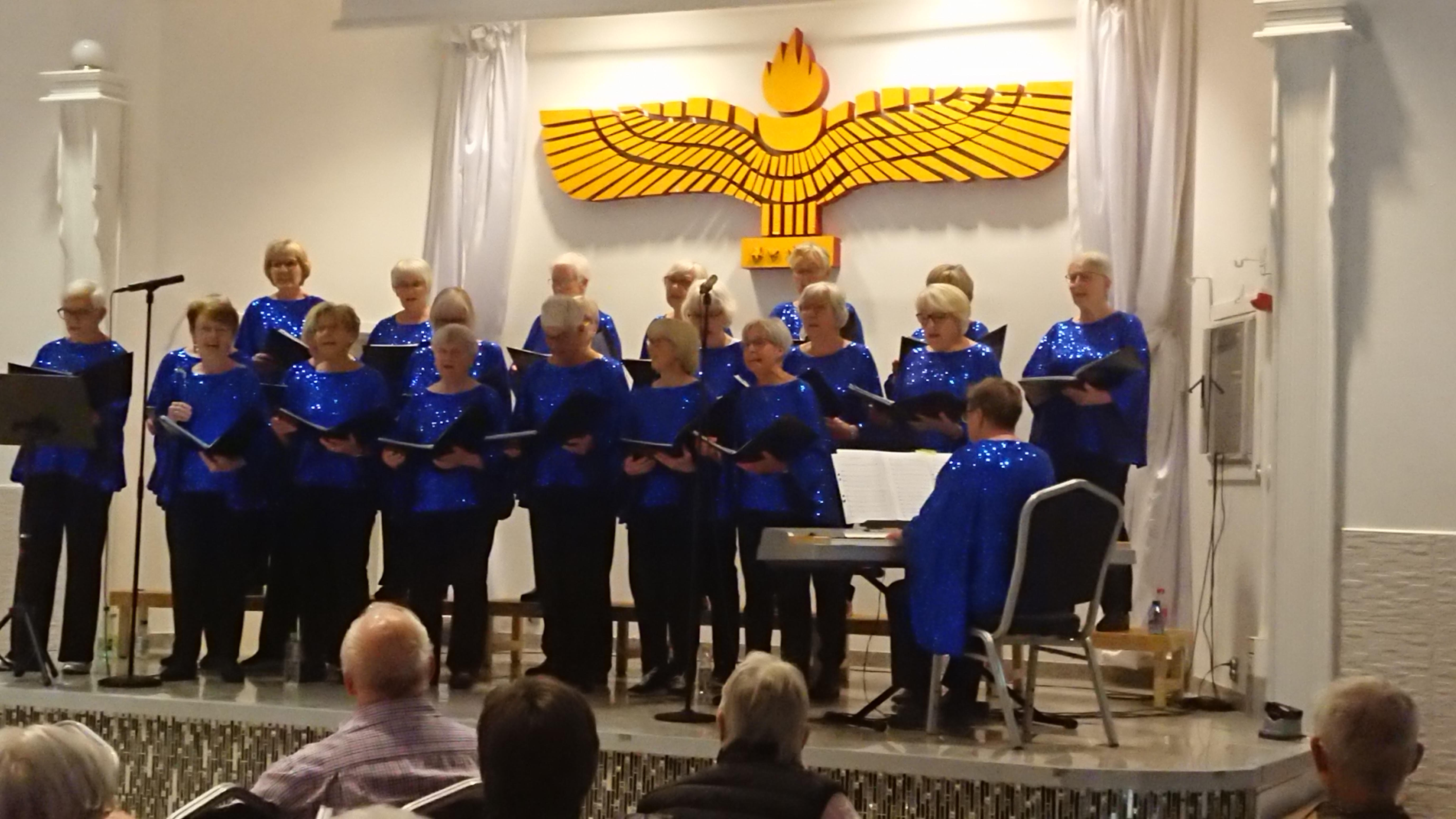 Hösten gjorde sig påmind med kallt och grått väder men samlade ändå ett hundratal medlemmar till vårt månadsmöte. Underhållningen, Aros Ladies, en grupp om 24 körsångare, fyllde den stora lokalen med sin vackra sång, melodier som vi känner igen och som skrivits ned av våra främsta låtskrivare.