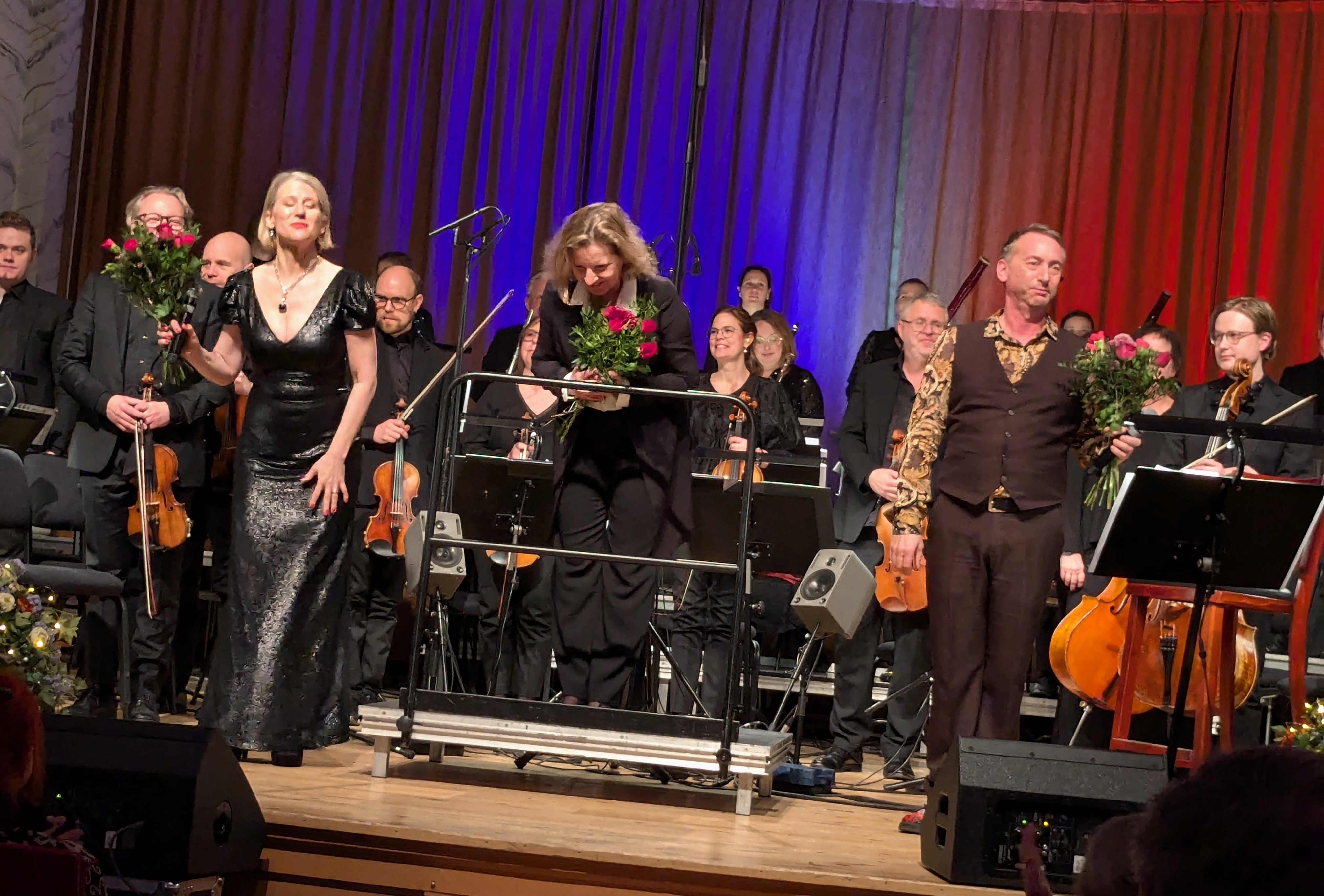 Avtackning av sångarna Åsa Fång och Anders Wångdahl samt Dalasinfoniettans dirigent Claire Levacher.