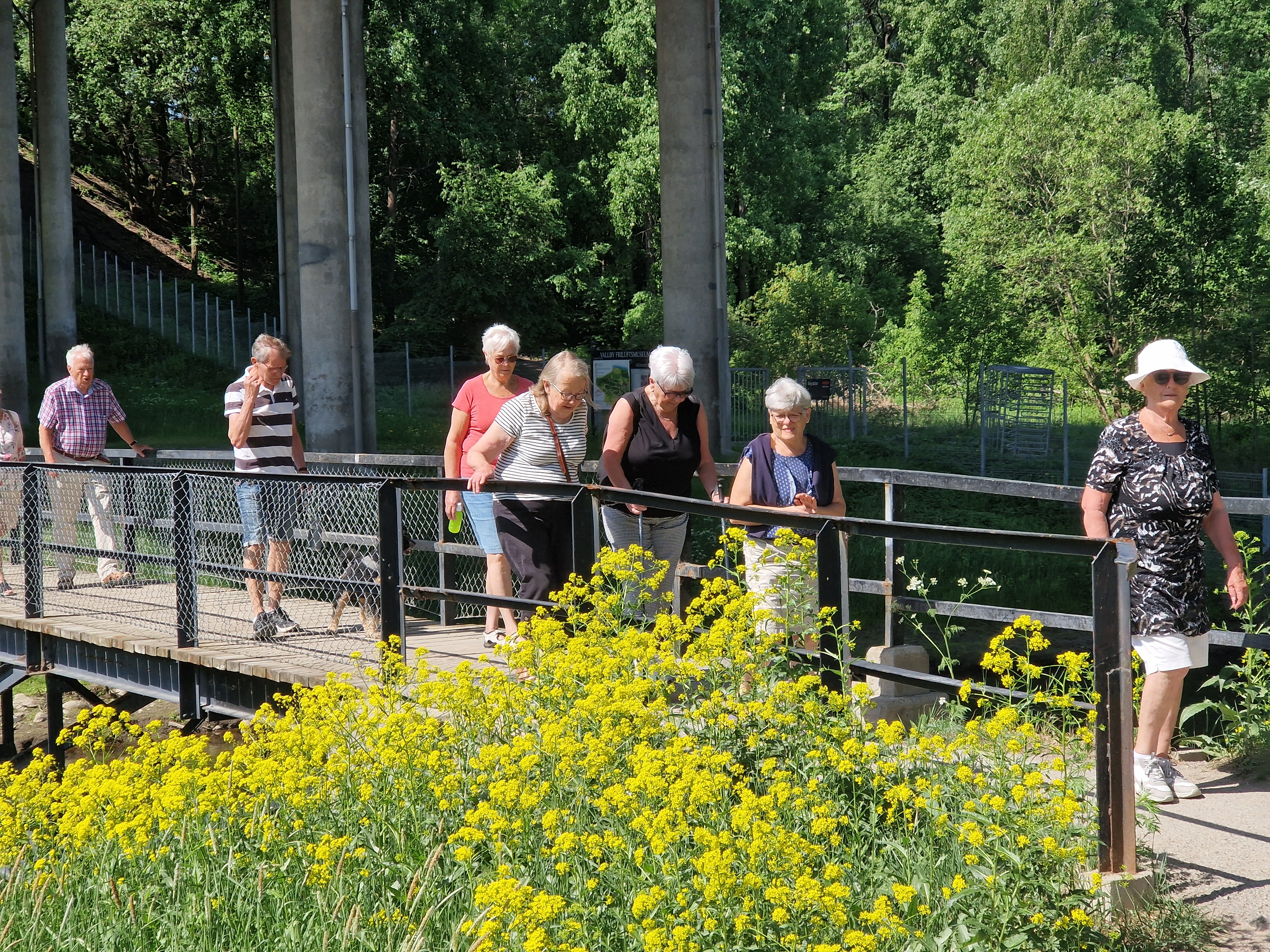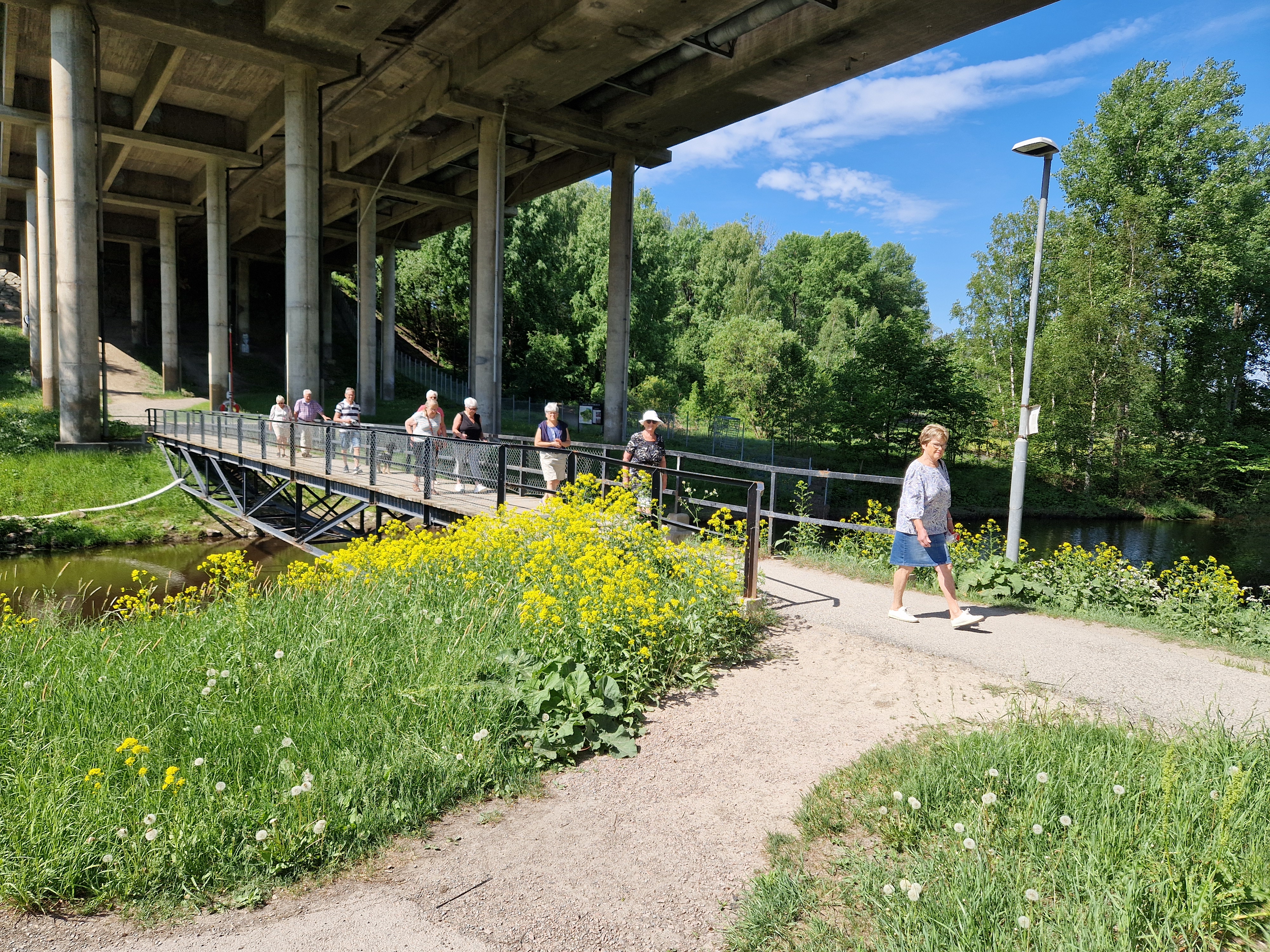Vi promenerade i lugnt tempo tillbaka och det var en skön svalka under Vallbybron vid ån, väldigt tyst var det också trots den täta trafiken på bron. Ljudet från alla bilar steg väl uppåt eller så har alla skaffat elbil numera. Det fanns ett par bänkar att slå sig ned på vid gångvägen för att vila benen och en vätskekontroll. Framme vid kaféet blev det kaffepaus och en lång pratsund samtidigt som vi såg flera besökare komma till denna oas i vår stad.