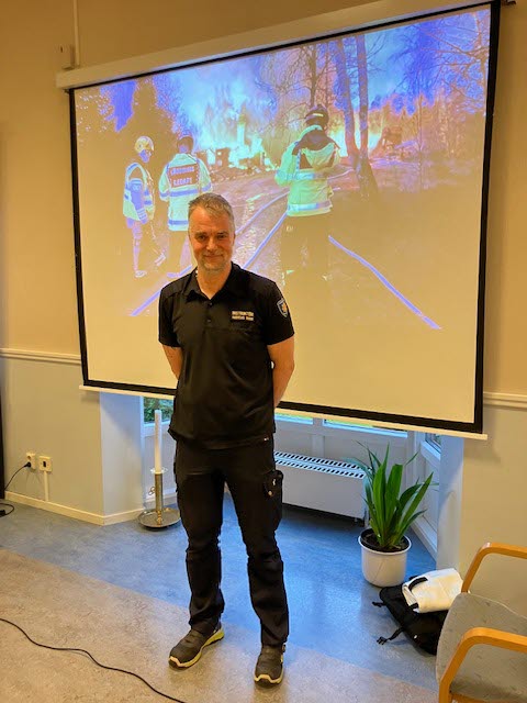 Det är mörkt och kulet så här års. Dagarna är korta och vi kryper gärna in och ”kurar skymning” och vi gillar att tända levande ljus. Vad passar då bättre än att få lite grundläggande brandutbildning på vårt månadsmöte? Vår ordförande Olle Huldt hälsade Anders Rudin från Räddningstjänsten i Mälardalen välkommen och vi fick en hel timmes föreläsning om viktiga saker att tänka på. Vi har alla ett eget ansvar för att förhindra att brand uppstår och man är skyldig att ha brandvarnare i bostaden. Dessutom behöver man ha brandsläckare och brandfiltar som är tillräckligt stora. En eld sprider sig snabbt och det gäller att agera klokt. Vi fick se många filmsekvenser på hur man kan börja släcka med det man har, hur man stänger elden ute från att sprida sig och hur man bäst gör för att inte människor ska komma till skada. Gå inte ut i rökfyllda trapphus, stanna i lägenheten var rådet vi fick. Till sist lite självrannsakan – när testade du din brandvarnare senast, hur gammal är din brandsläckare och var förvarar du din brandutrustning? Det var en bra och nyttig föreläsning. Som tack för besöket – i stället för en blomma - fick Anders med sig ett par batteridrivna ljus att ta till brandstationen.