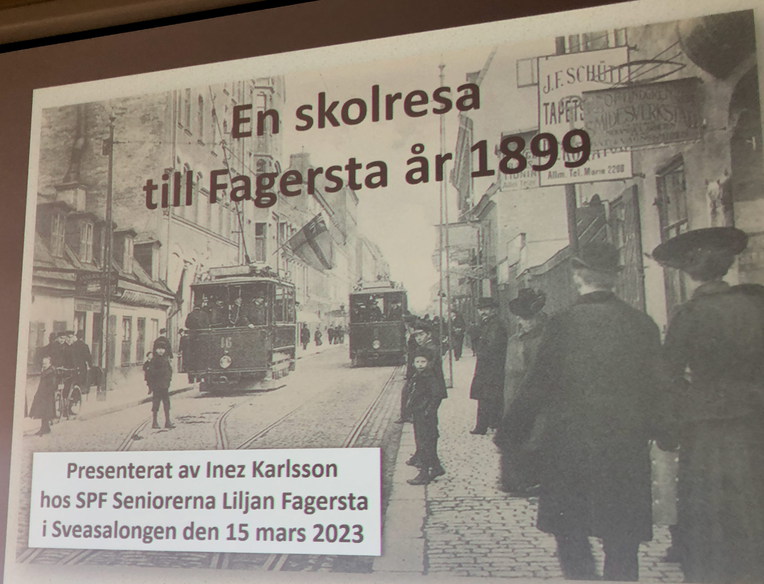 Vi fick lyssna till en engagerad och intressant berättelse om hur några Stockholmspojkar fick möjlighet att göra en skolresa från Stockholm till Fagersta under en vecka på försommaren 1899. Resplanen syns på en av bilderna.